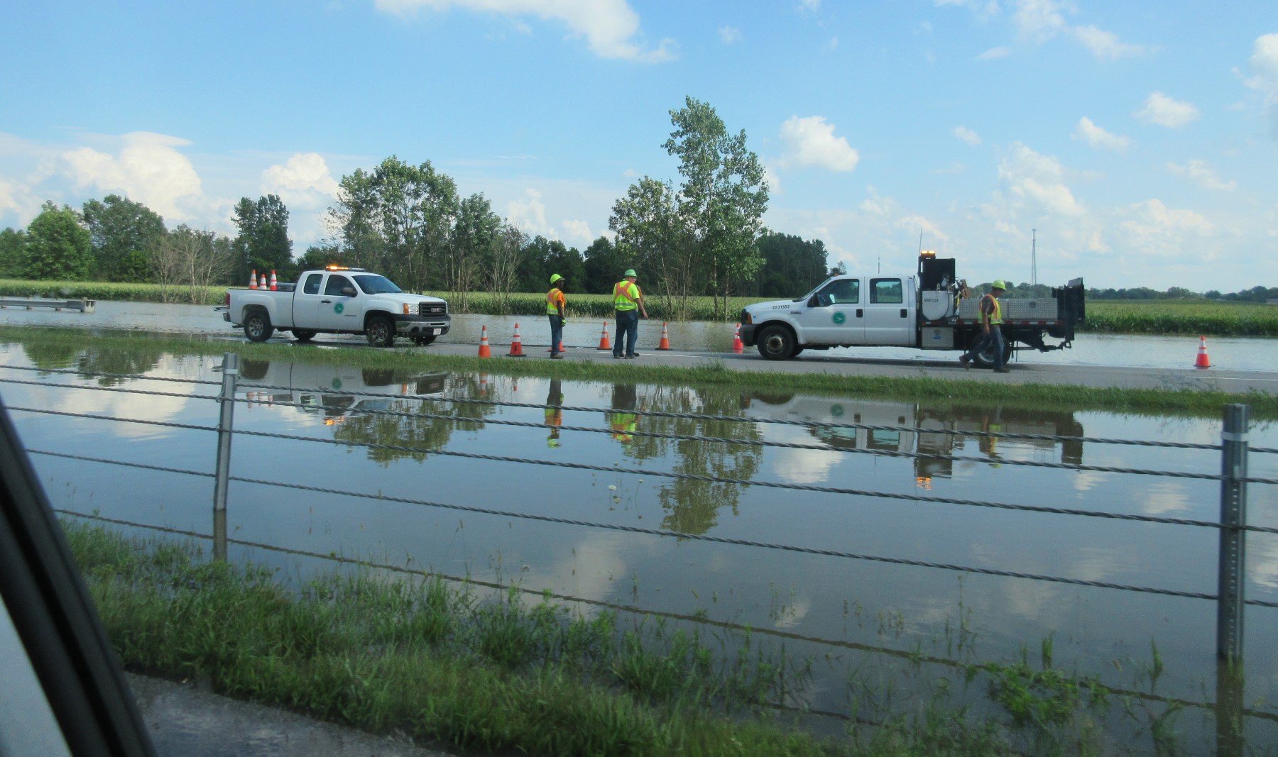 Another few forevers later, we located the culprit. Between our toy museum rap-battle and our diversion in Bellaire, we’d missed a powerful storm system that left large sections of Ohio flooded that Friday, including parts of I-70. Further ahead we saw how bad it was and completely understood. This wasn’t our first washed-out interstate — we had the same problem trying to drive through Iowa on our 2009 road trip.
