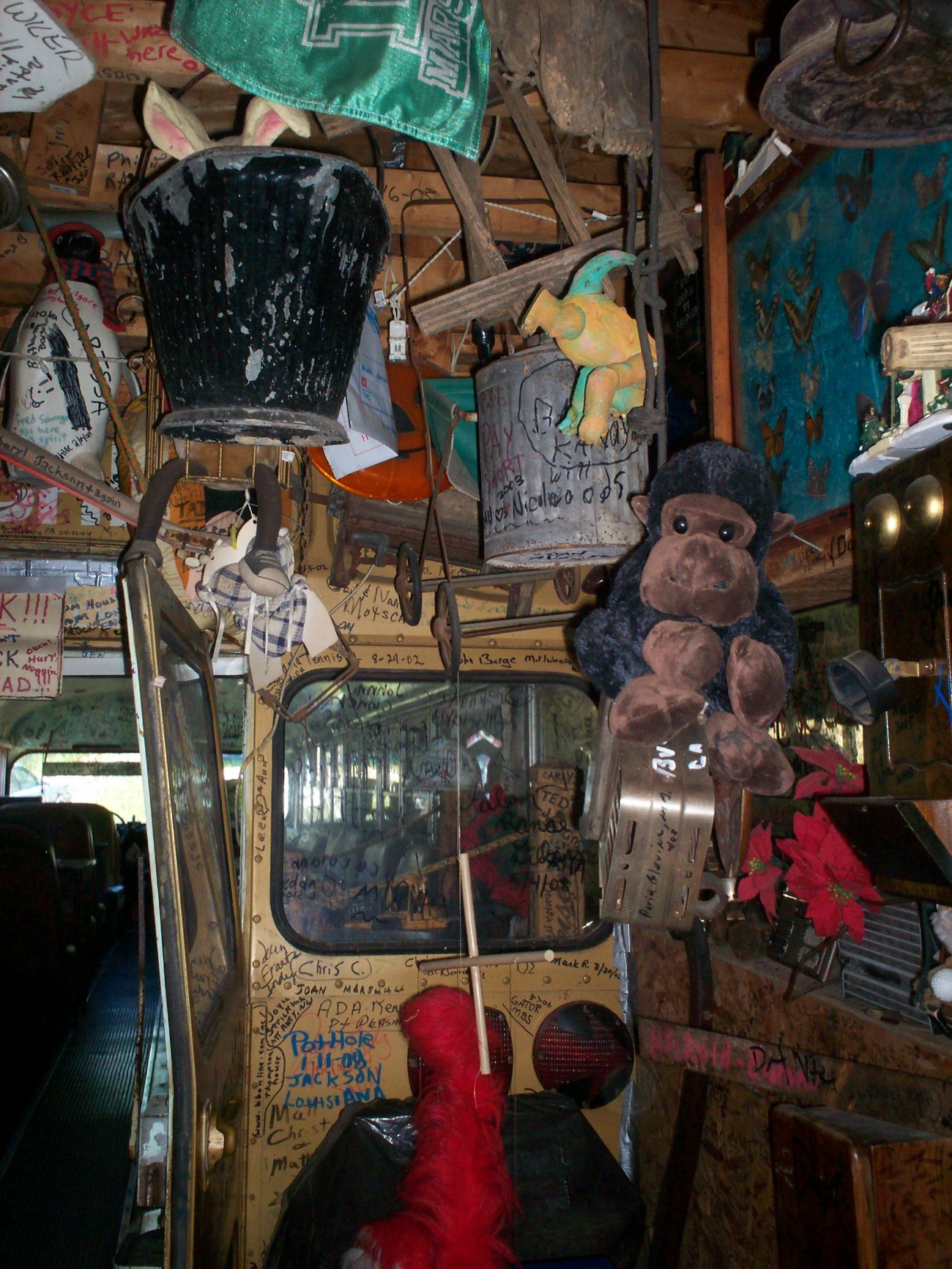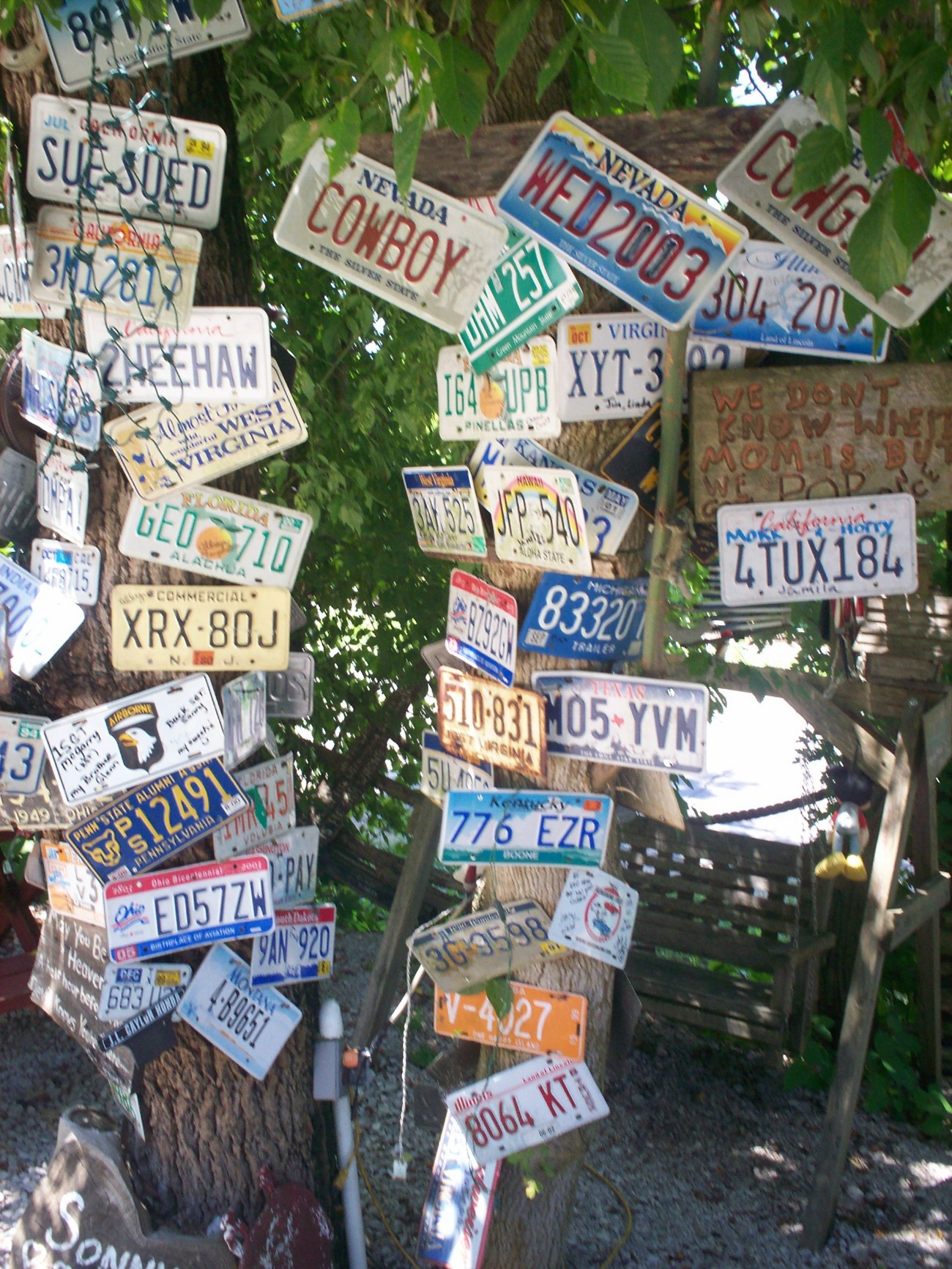 Outside is a post upon which hang the license plates that, I think, once belonged to those ex-patrons wrecked by the Homewrecker who never left the premises alive.