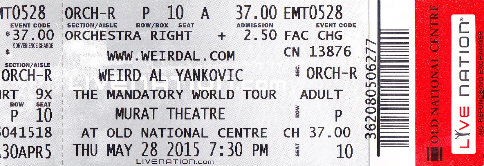 * 5/28/2015: Weird Al Yankovic (the Old National Centre, formerly the Murat)