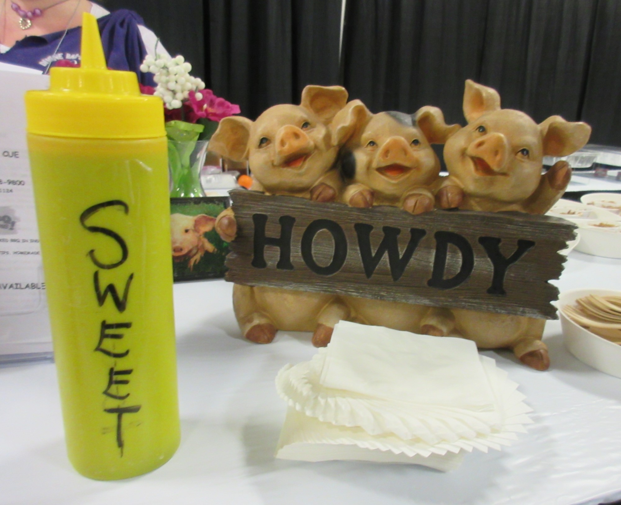 Mascot from Big Poppa’s Pork Pit touts their fresh-cooked sliders and classic picnic sides.