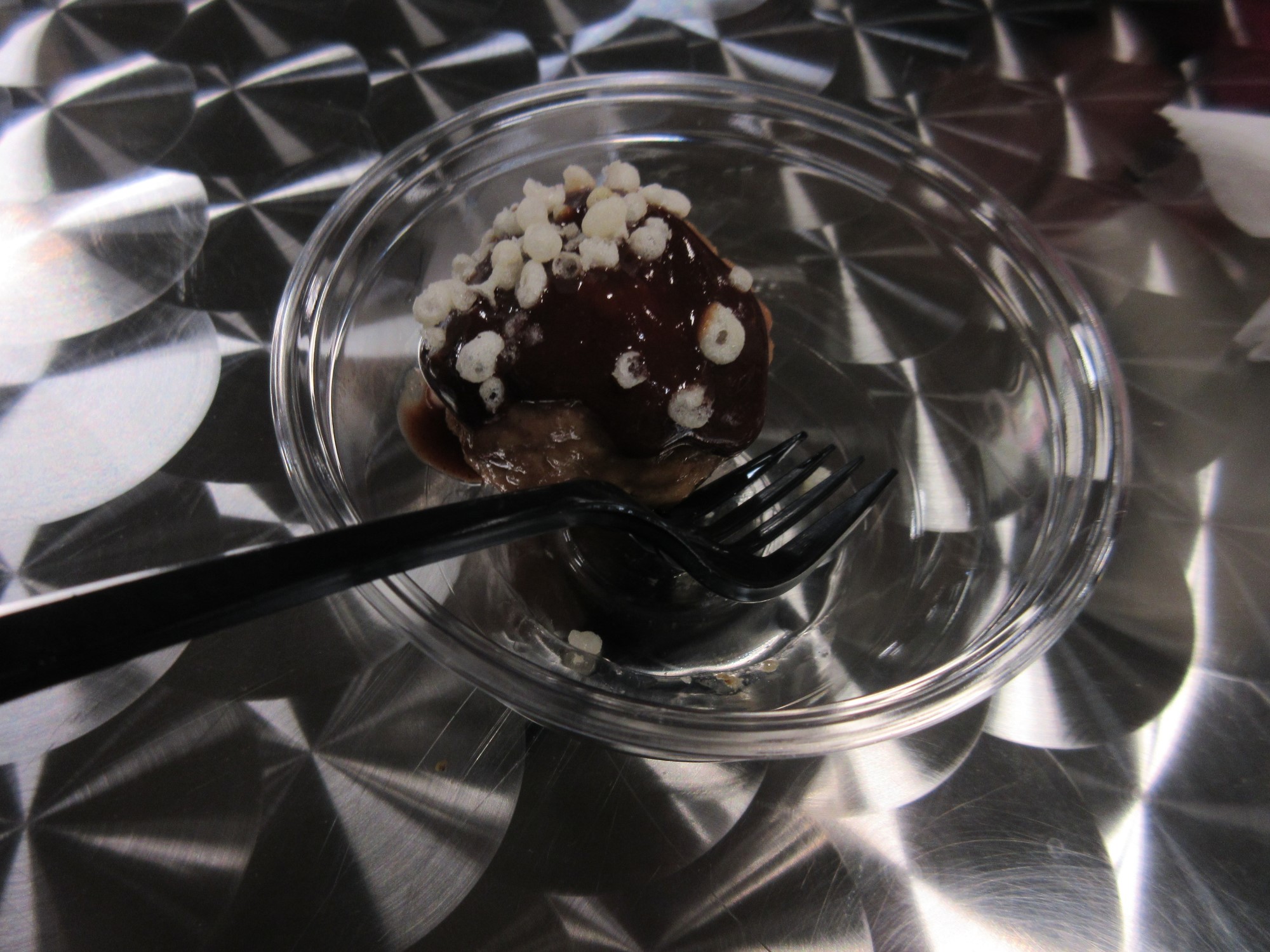 Some samples came on bread or other vehicles; others were served in tiny plastic cups or bowls. Unfortunately my sloppy notes obscured which Tasting Pavilion contender made this barbecue sandwich .