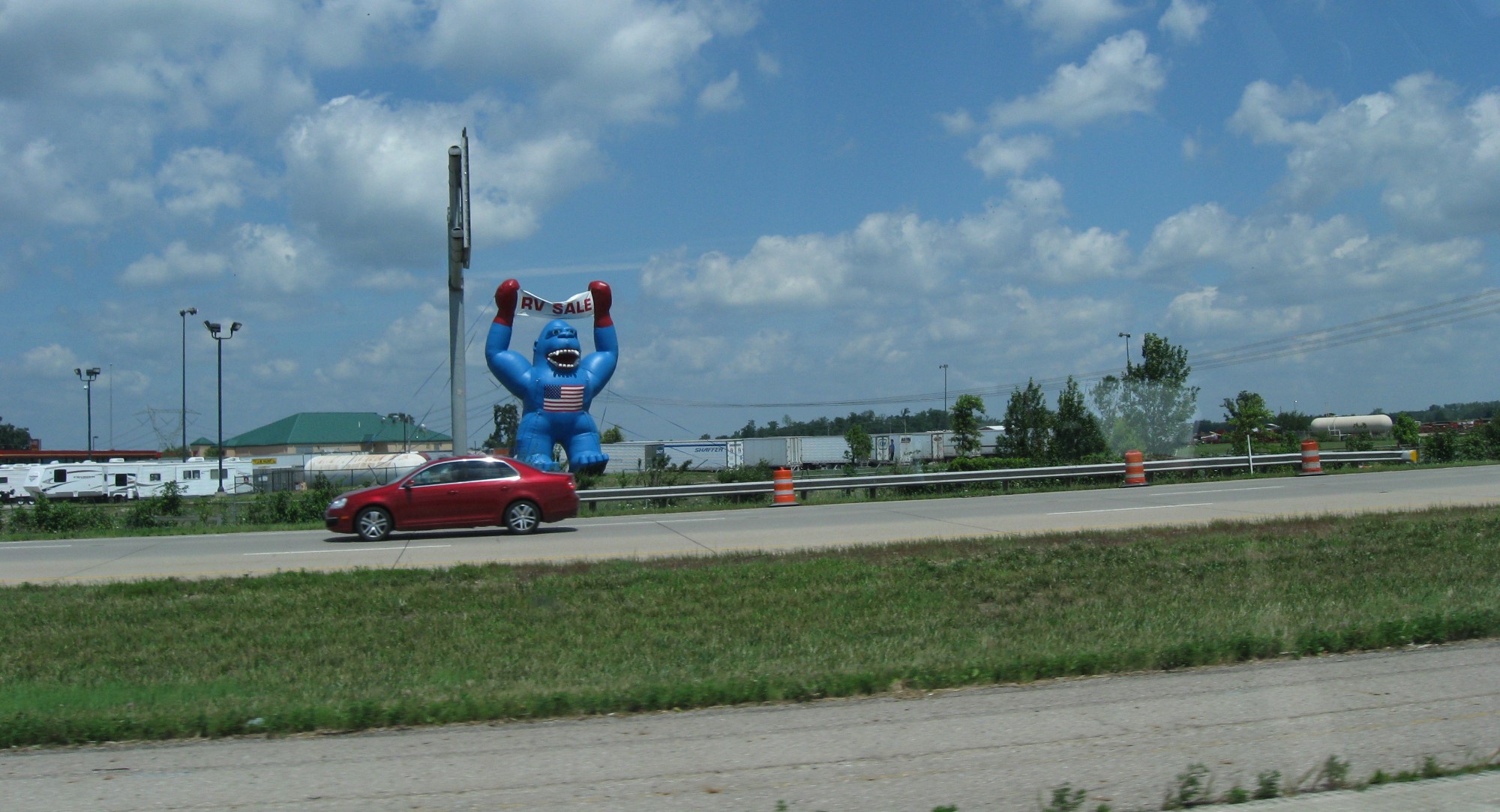 We returned home, filled the inadequate trunk space with minimal luggage, and kicked off our trip with three straight hours on I-70 and into our old nemesis Ohio, which tried to atone for past sins against us by not drawing attention to itself, except for this conciliatory offering of a gratuitous monkey between Springfield and Columbus.