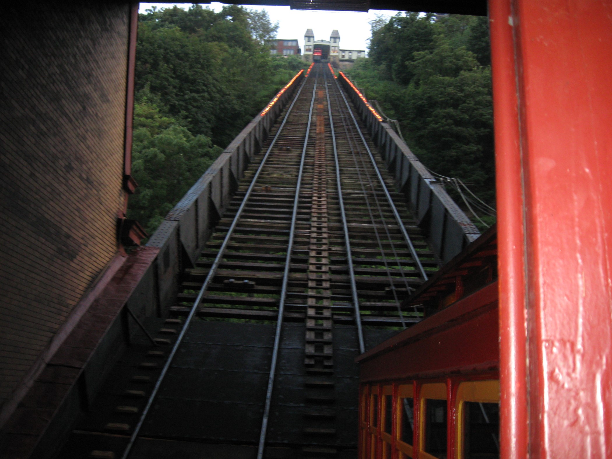 With that image haunting me, I stayed pretty rattled for the rest of the night. I passed our intended stop once, turned around several blocks later, and finally focused long enough to turn into the free gravel parking lot for the Duquesne Incline, an old-time truncated railroad to a scenic overlook atop Mount Washington with a great view of downtown Pittsburgh in all its steel-driving sports-loving glory evocative of Billy Joel’s “Allentown”.