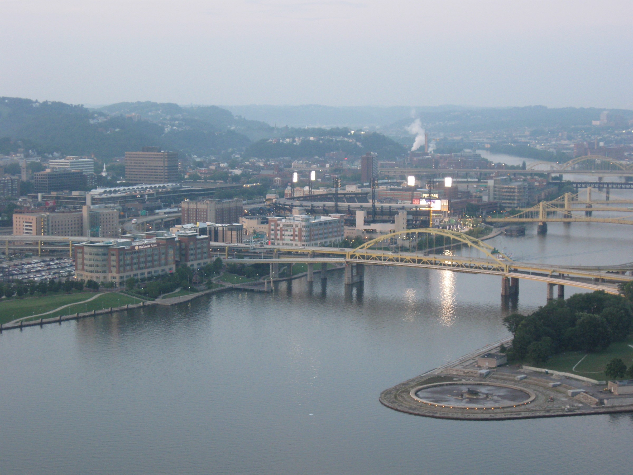 Twilight was imminent by the time we returned to our car. Anne was a little frustrated that our day had yielded only a single Pittsburgh attraction. I hadn’t been optimistic about the day from the start — Pittsburgh’s basic tourism materials hadn’t offered a lot beyond sports and nature, and our late arrival eliminated everything else for the night. I admit I was disappointed that I hadn’t taken more time to dig more deeply into our resources and provide something else memorable to cap off our Monday. Alas, we merely headed back to the hotel to recover and pray that our next day would be even better.