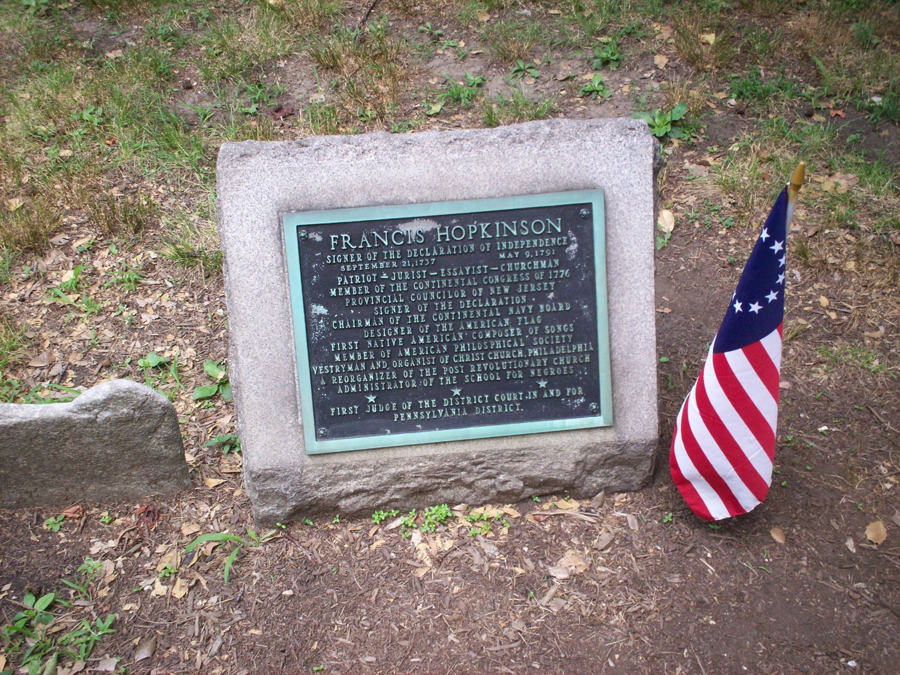 Francis Hopkinson, signer of the Declaration of Independence on behalf of New Jersey. Composer, currency designer, and the inventor of the stars-and-stripes motif that would define the format of future versions of the Flag of the United States.