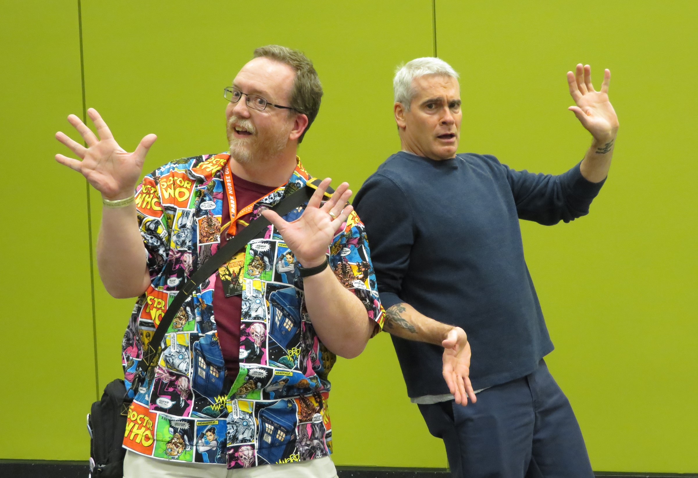 Reaching even father back into time, we come to one of my heroes from my young-adult years: singer/poet/actor/OG punk singer Henry Rollins. As head of the Rollins Band, their 1992 album The End of Silence was one of two albums that served as both catharsis and lifeline for me during my not-so-lovable young-adult years. He’s been doing lively spoken-word engagements for decades ever since the demise of his old hardcore band Black Flag, and ever since he put the Rollins Band off to the side. This year he added conventions to his touring repertoire, including HorrorHound Cincinnati two weeks ago. I previously saw him live in Indianapolis back in 2008 on his “Provoked” tour, but from terrible seats at the far back of the theater. This year Anne decided to treat me to an encore with “premium” seating.