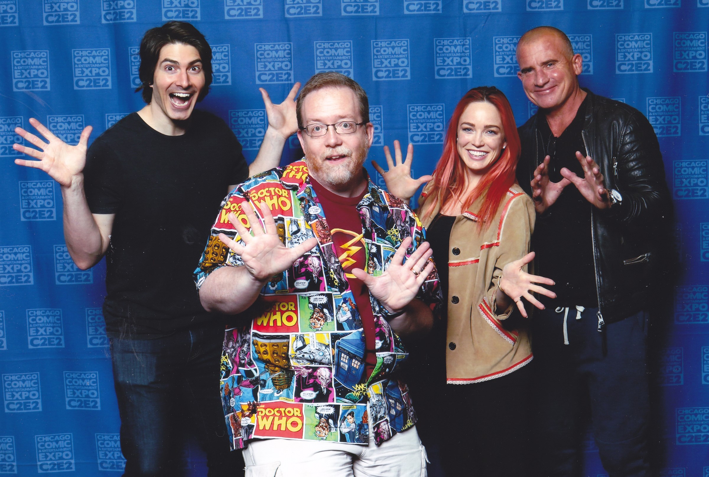 Also hailing from space: three members of the cast of DC’s Legends of Tomorrow! Brandon Routh (Superman Returns, Scott Pilgrim vs. the World, TV’s Chuck) plays Ray Palmer, a.k.a. the Atom, their resident scientist and Iron Man analog; Caity Lotz is team leader Canary, who has to overcome her dark past from Arrow and somehow whip her band of misfits into some kind of fighting form; and Dominic Purcell (Prison Break, Blade: Trinity) is Mick Rory, a.k.a. the moderately reformed villain Heat Wave, in charge of grumbling a lot, eating everything on their ship, and dropping all the best punchlines. Together they travel through time, fix broken events, confront the forces of evil, and try not to kill each other.