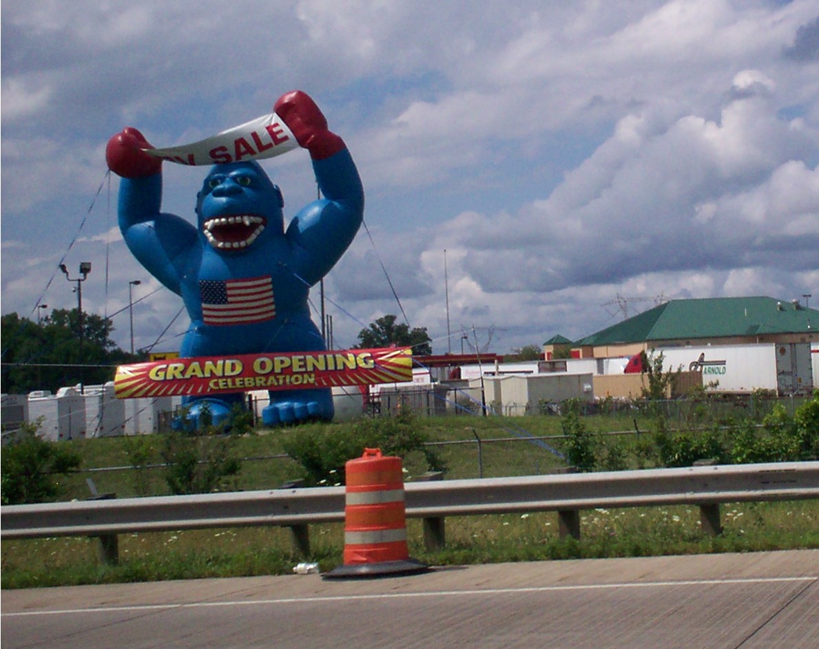 Kudos to this inflatable blue Gorilla, the only new sight that caught our eye in Ohio on the way back.