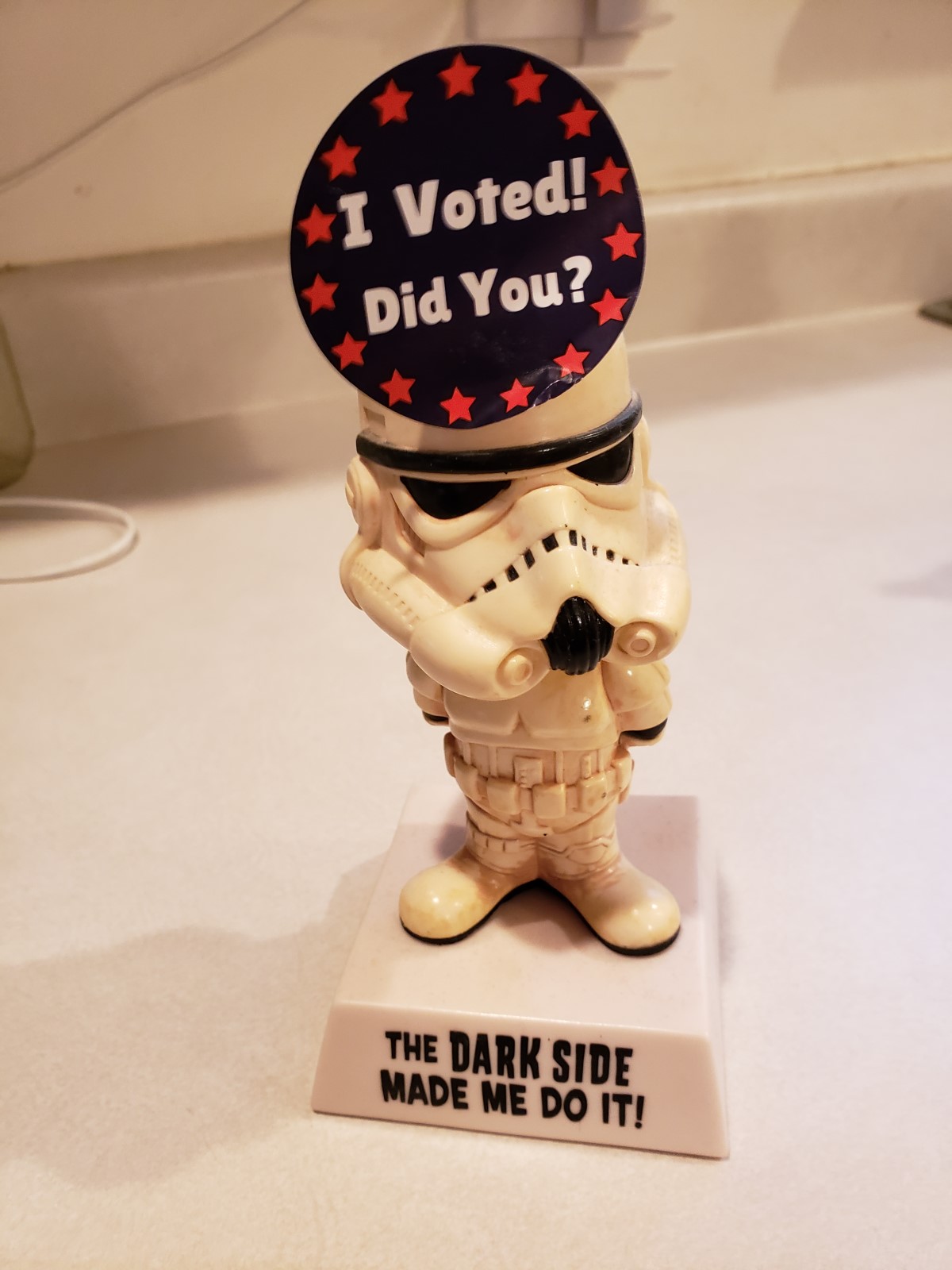 We also have a U.S. Congressional seat up for renewal. The ten-year incumbent — a black Muslim who succeeded his own grandmother, who held the same seat for the ten years prior — had four contenders from his own party: a convicted felon, a sanitation worker, a lady who runs the café at our main library downtown, and some white guy whose facts and trivia kept escaping my head every time I tried to memorize any of them. The incumbent’s landslide victory was shocking to no one, but The Woman trounced the other guys. Meanwhile on the other side, contenders for that same office include dudes with nicknames like “Gunny” and “Big Dog”, which were actually printed on the ballots. Suffice it to say a new breed of contenders are feeling more emboldened in the current climate than others.