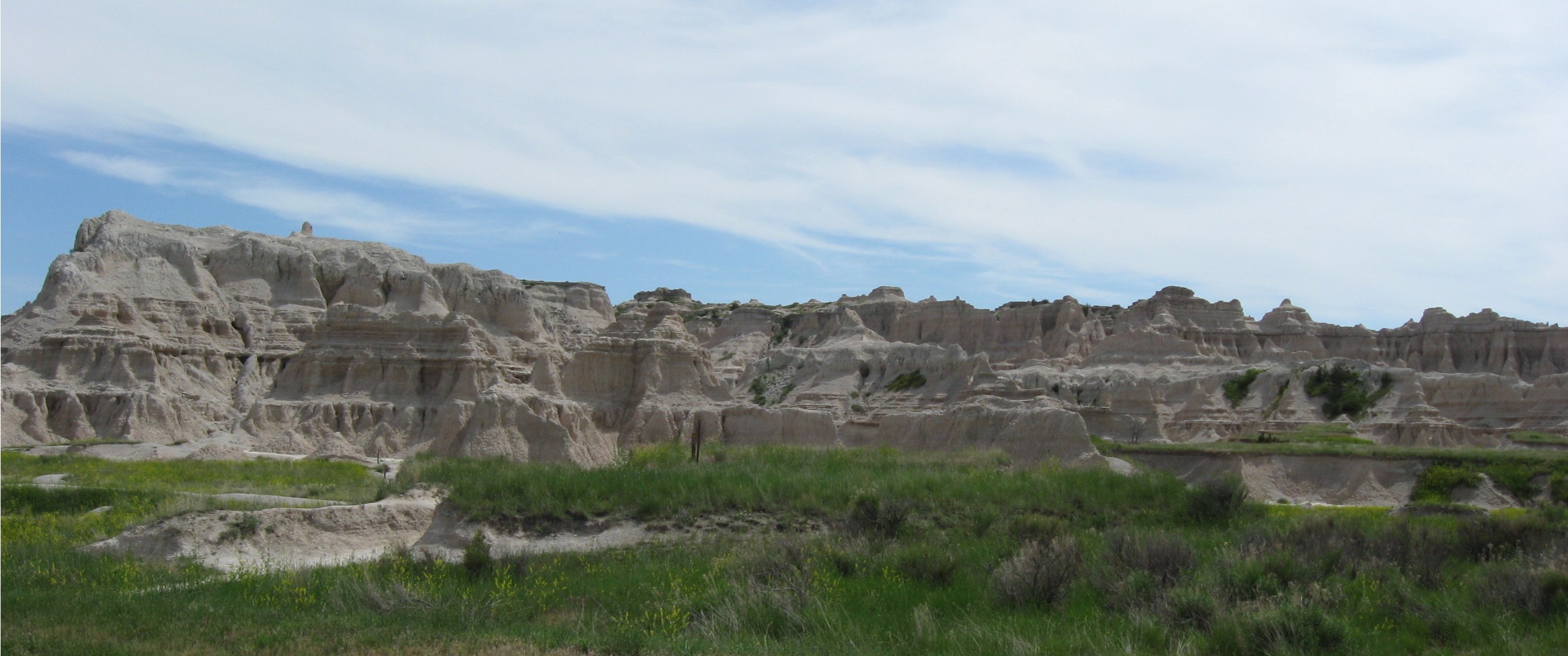 Less than an hour later, the scenery radically shifted from pure grasslands to spots of isolated rock on my left. One turnoff later, we were at Badlands National Park.