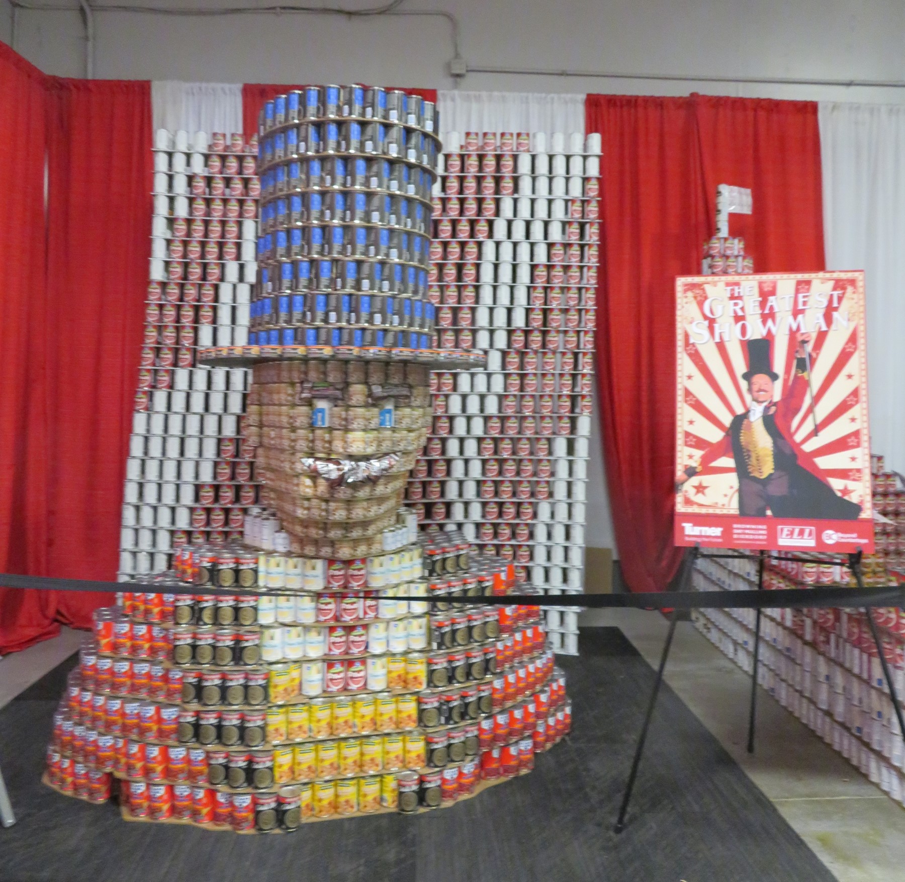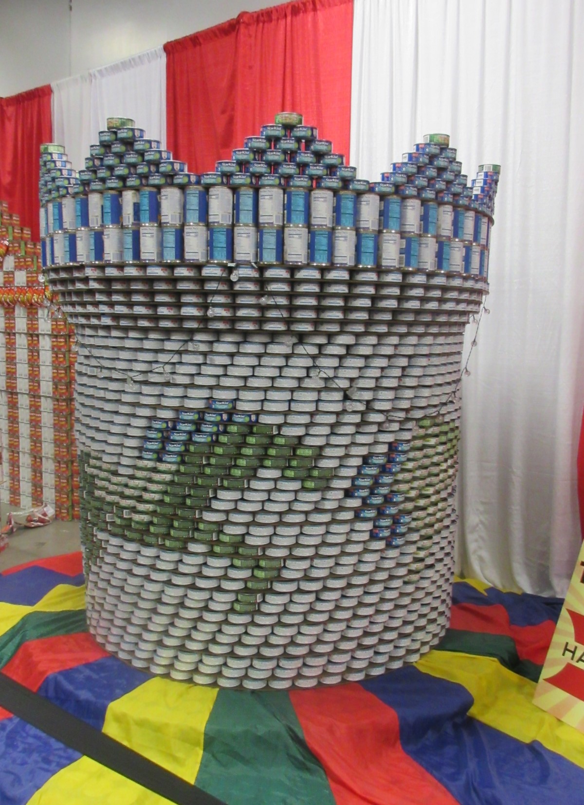 One of the annual traditions that always catches our eye is the canned-food sculpture contest. Teams stack thousands of cans into shapes fitting a preselected theme. Naturally this year they aimed for circus iconography, though they had a harder time than usual coming up with visually distinguishable and on-topic ideas.
