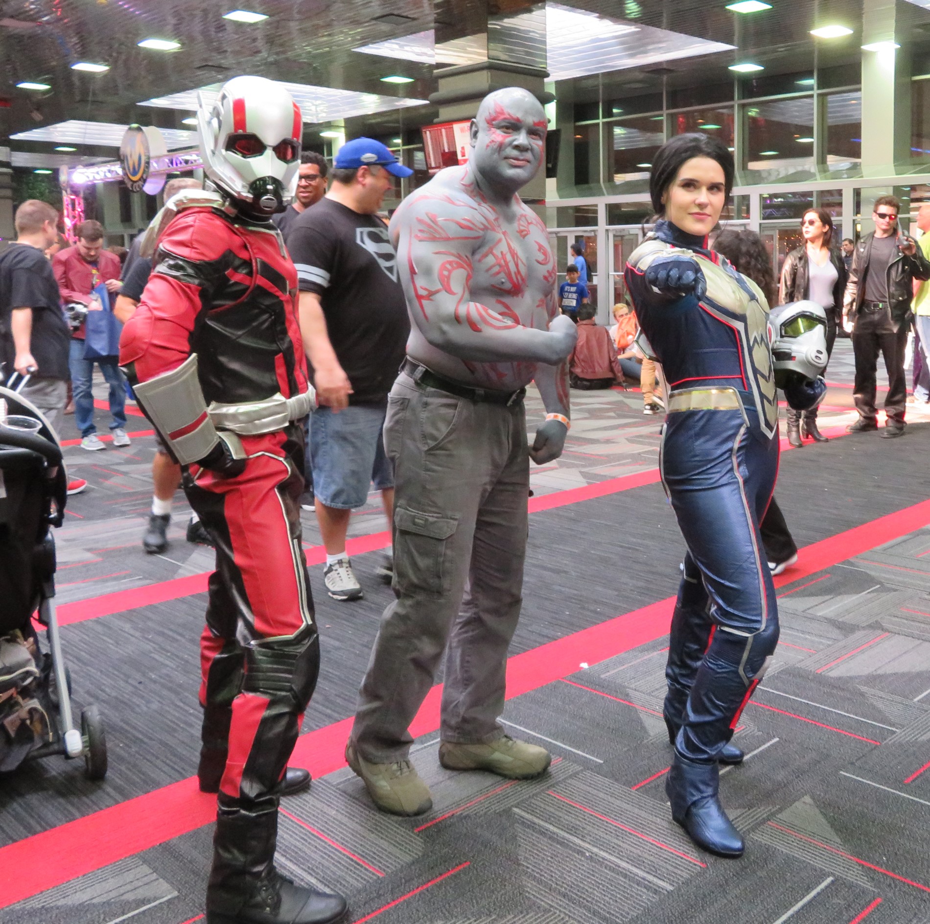 Once again we lead off a new convention miniseries with the mandatory cosplay galleries. We captured whoever we could while wandering the show floor Friday and Saturday in between the autograph lines, the random bits of shopping, and the nightmarish photo-op area, whose Saturday morning state I previously described on Facebook as “a dumpster fire run over by Pamplona bulls being chased by multiple Sharknados.” Anyway: the first three chapters will represent a fraction of a fraction of a fraction of the costumes that were in the house. Because I always feel the need to divide cosplayers into arbitrary categories, our first set spotlights the stars of screen and page from the multimedia worlds of Marvel and DC Comics. As always, keep in mind we’re not paid professionals with $3000 cameras. We’re a pair of geeks all too happy to share photos and give away amateur journalism for free. Enjoy!