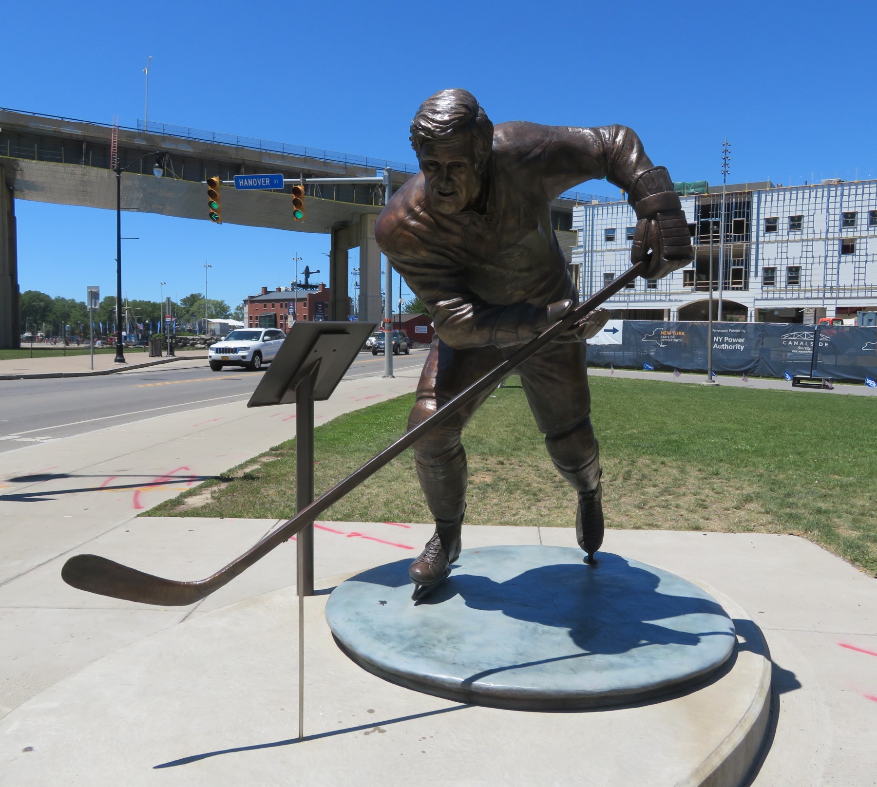 Before his tragic death in 1974, the Canadian hockey star and restaurateur played for the Buffalo Sabres in the final two years of his career and saw them through their first trip to the NHL playoffs. I first encountered his eponymous fast-food chain (est. 1964) on our previous Buffalo stay in 2004. I hadn’t expected to see them again this year and had to smile at the serendipity with a modicum of irony. Their seating was minimal, but on this Sunday afternoon, so was their post-lunch crowd. It wasn’t fancy, but it filled a need, especially welcome after that long summertime walkabout.