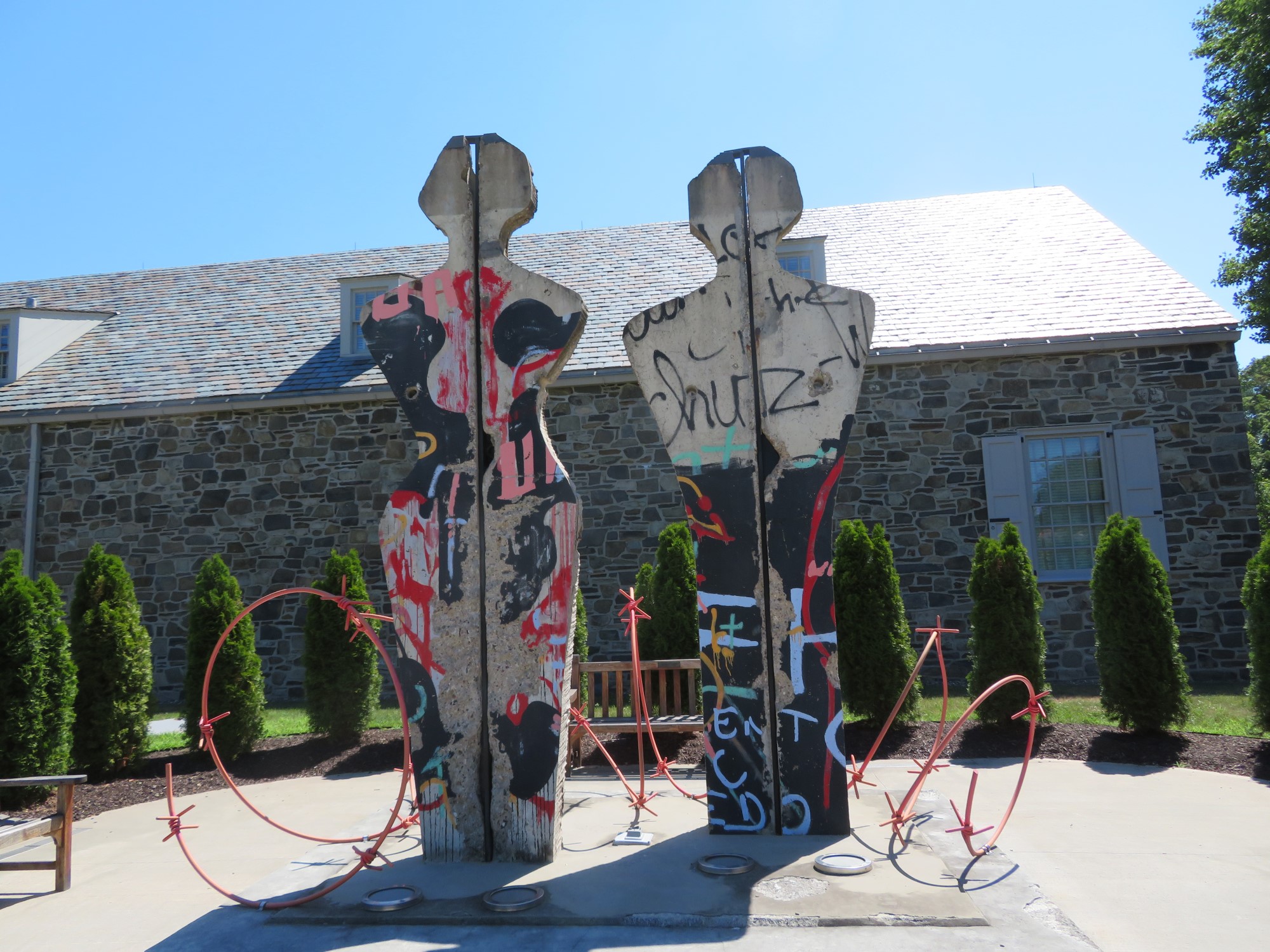 Tangential contemporary pieces include these figures made from the Berlin Wall. The surrounding wall section now stands in Fulton, MO.