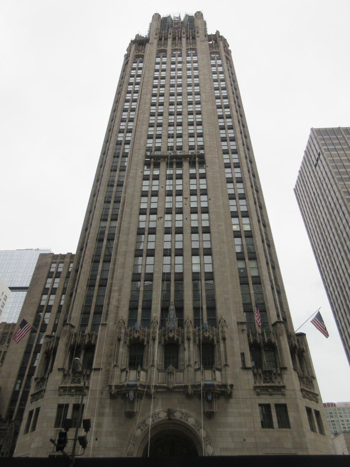 Right across the street from the staircase is Tribune Tower, former home of the Chicago Tribune. Earlier this year their new clickbait overlords at Tronc sold it off and relocated the company down the street to a duller, squarer, beiger building. Plans are now afoot to turn this entire grand monolith into condos.