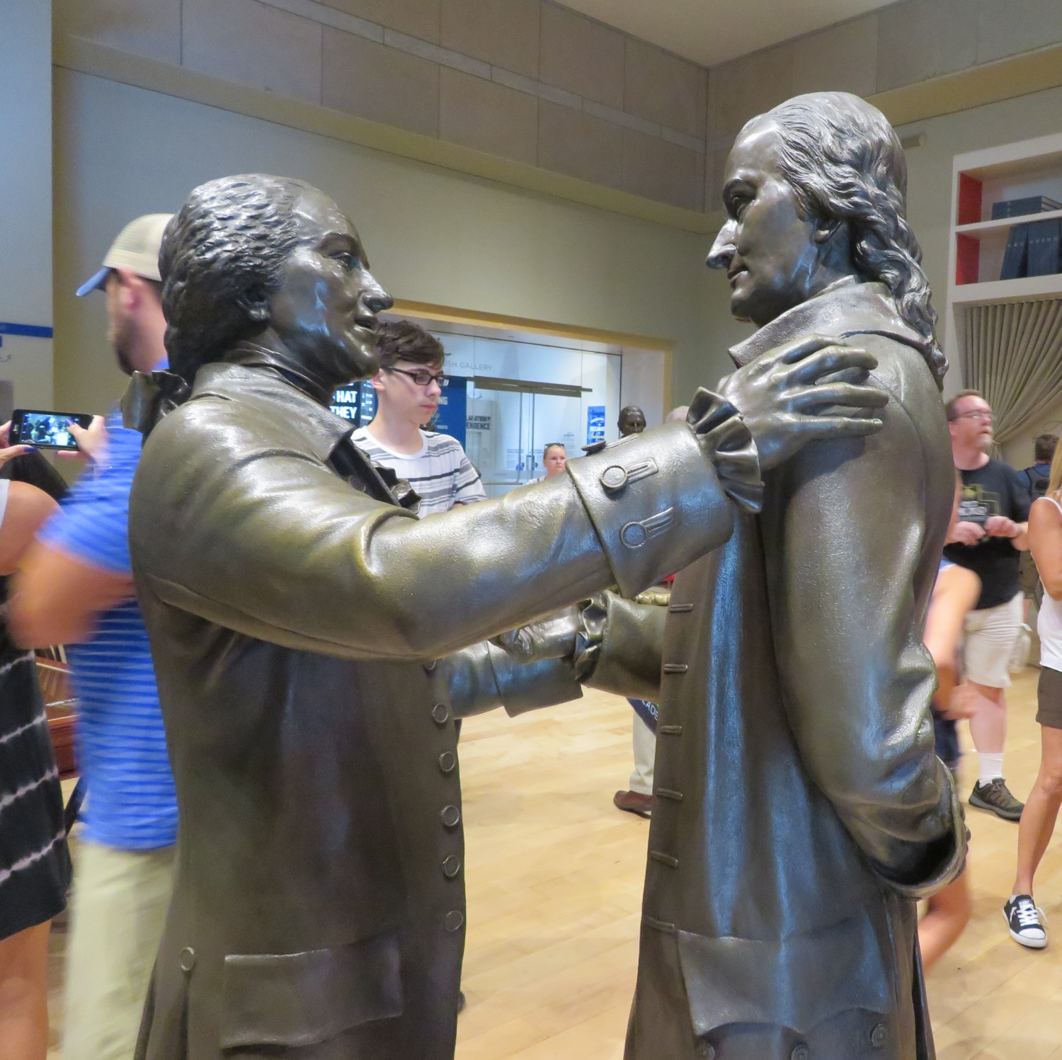 Upstairs in Signers’ Hall, 42 bronze statues — the work of Brooklyn-based StudioEIS using all available historical resources, visual as well as descriptive — capture the likenesses of the representatives present at the Constitutional Convention on the day of September 17, 1787. 39 of those men signed the document and moved the shared ideal of America to the next phase of its existence. It didn’t make everyone happy. Strictly speaking, it wasn’t supposed to. Hence the whole “amendment” structure. If everyone agreed on its contents — then or today — we wouldn’t need it in the first place. We’d all simply live in superficial hivemind bliss. For better or worse, America was never meant to be a hivemind.