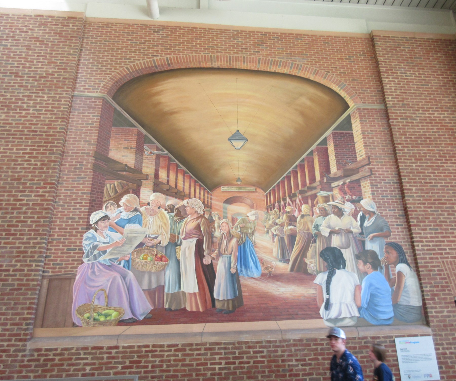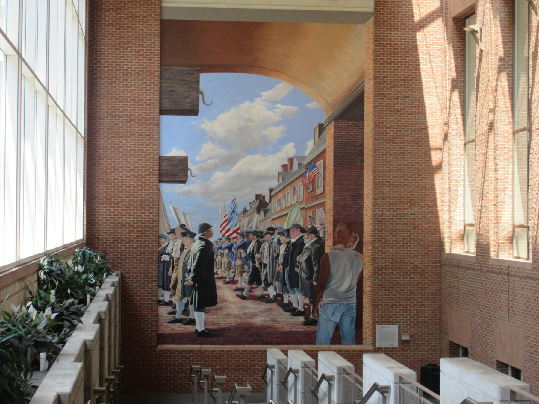 We had considered heading down the hallway to the Liberty Bell Center for another glimpse of that famous American artifact, possibly to take better pictures. When we saw how long the line was, we reconsidered and opted out of an encore.