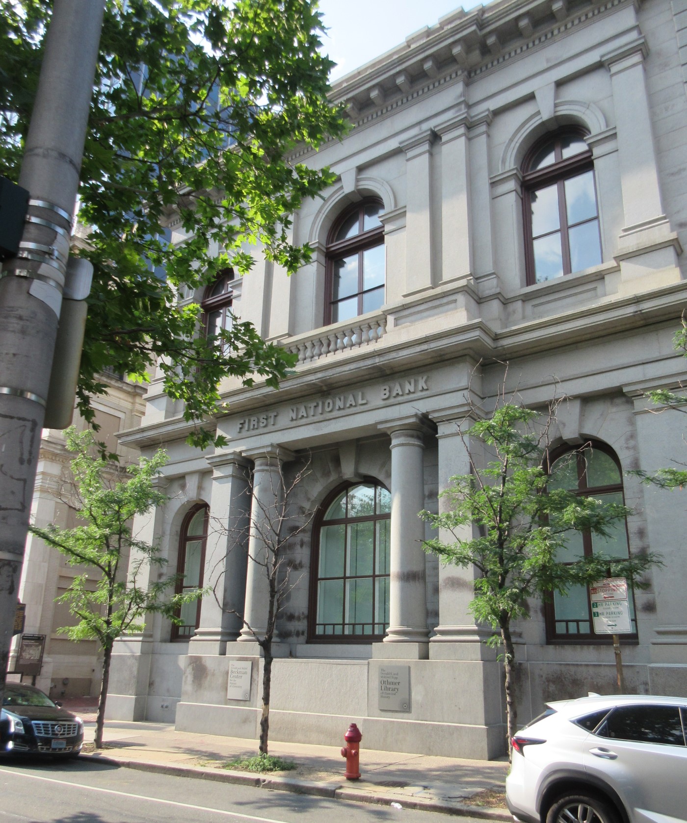 The First National Bank dates back to 1863, but later became part of Wells Fargo and relocated somewhere boring. The historical building they gave up now belongs to the Science History Institute.