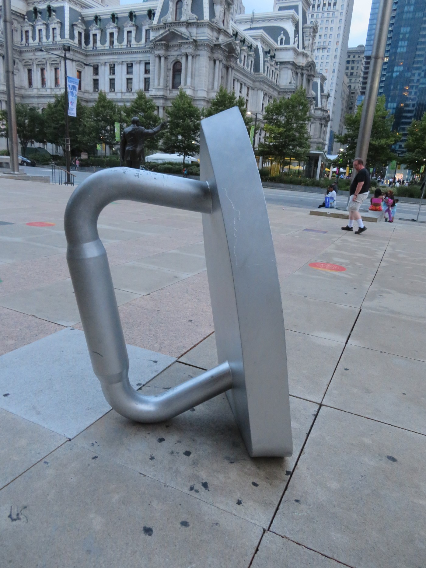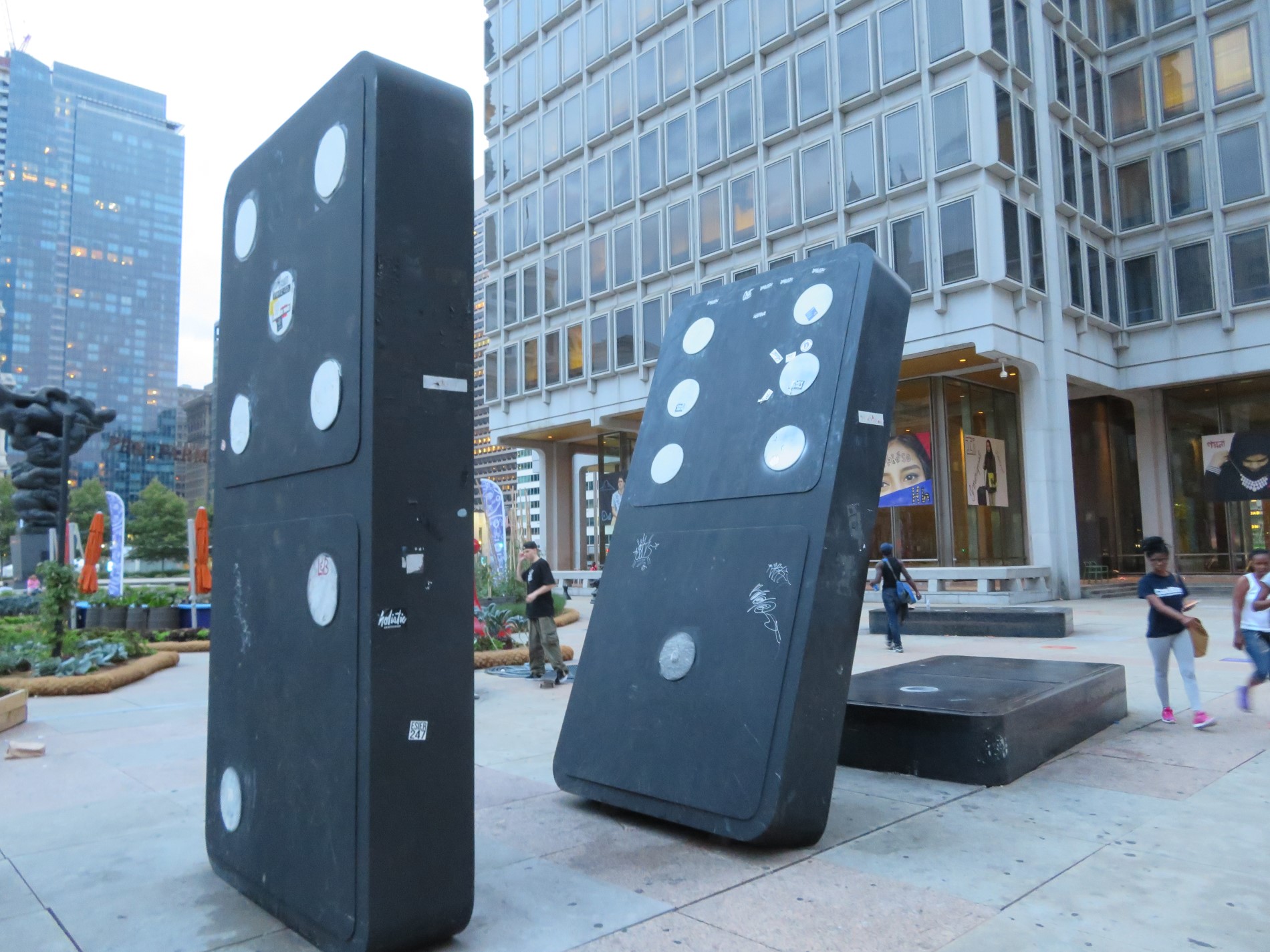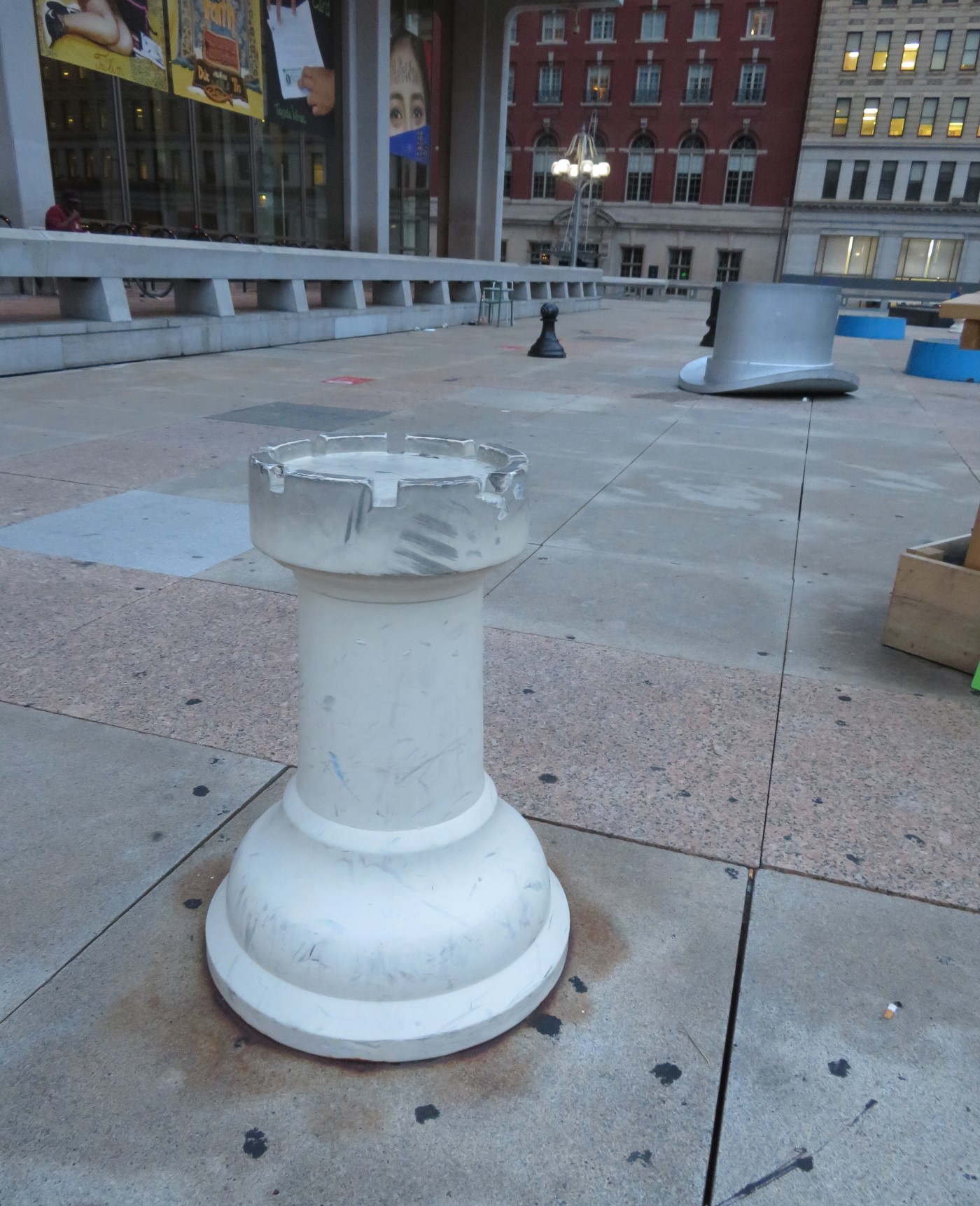 By the time we were released from dinner, some of the attractions on our Philadelphia to-do list were already closed. We weren’t happy, but we still had options. Exhibit A: a 1996 multi-item art installation called Your Move. The work of artists Daniel Martinez, Renee Petropoulis, and Roger White, it’s more commonly known among roadside attraction fans as the “Board Game Art Park”. On one block of downtown Philly are several super-sized pieces from a variety of well-known board games — some trademarked, some classic — most likely intended as social commentary (e.g., government/politics/life can be just one big confusing game with too many rules to follow and too many boards to juggle at once), but it’s entertaining to see up close for simple nostalgia.