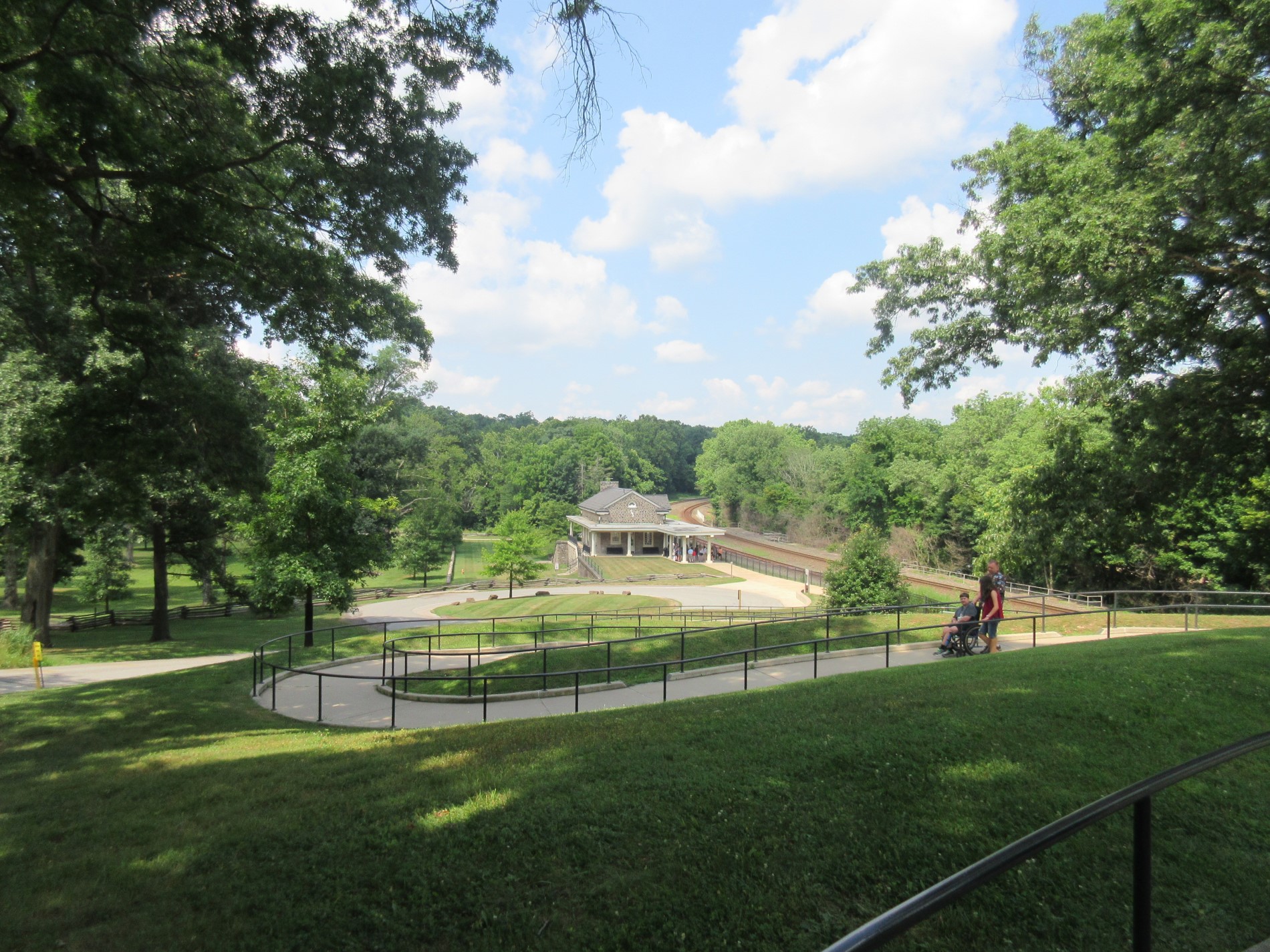 Farther down the road, the next major feature could only be reached by traversing what felt like the longest wheelchair ramp in North America, a paved sidewalk made entirely of hairpin turns heading down a grassy hill.