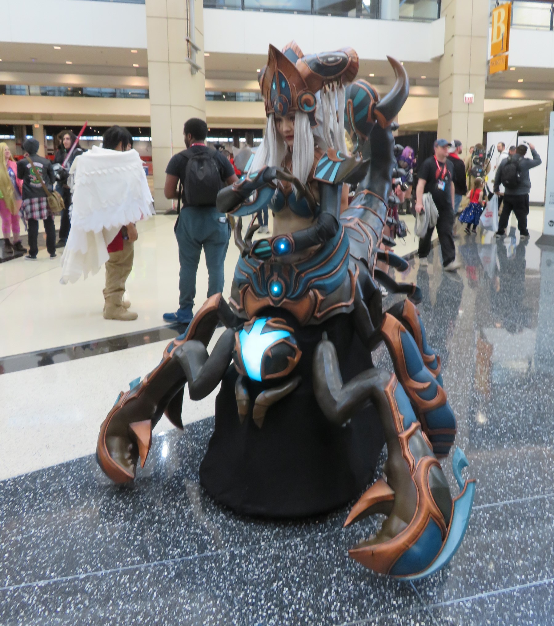 At most cons we end up with a small selection of photos I like to call “Stump the Olds”, in which we share photos of costumes that we thought looked somewhere between fancy and ingenious, and we took their picture even though we have absolutely no idea what character we’re looking at. If someone recognizes any of our next three subjects and can broaden our horizons by identifying them, that would be tremendously appreciated. I’m not quite satisfied with posting blind, unlabeled, anonymous cosplay pics even though thousands of convention-cosplay photogs super-love doing exactly that on Instagram all the time. I aspire to be at least a smidgen better than that if someone’ll help cure my ignorance. Much obliged!