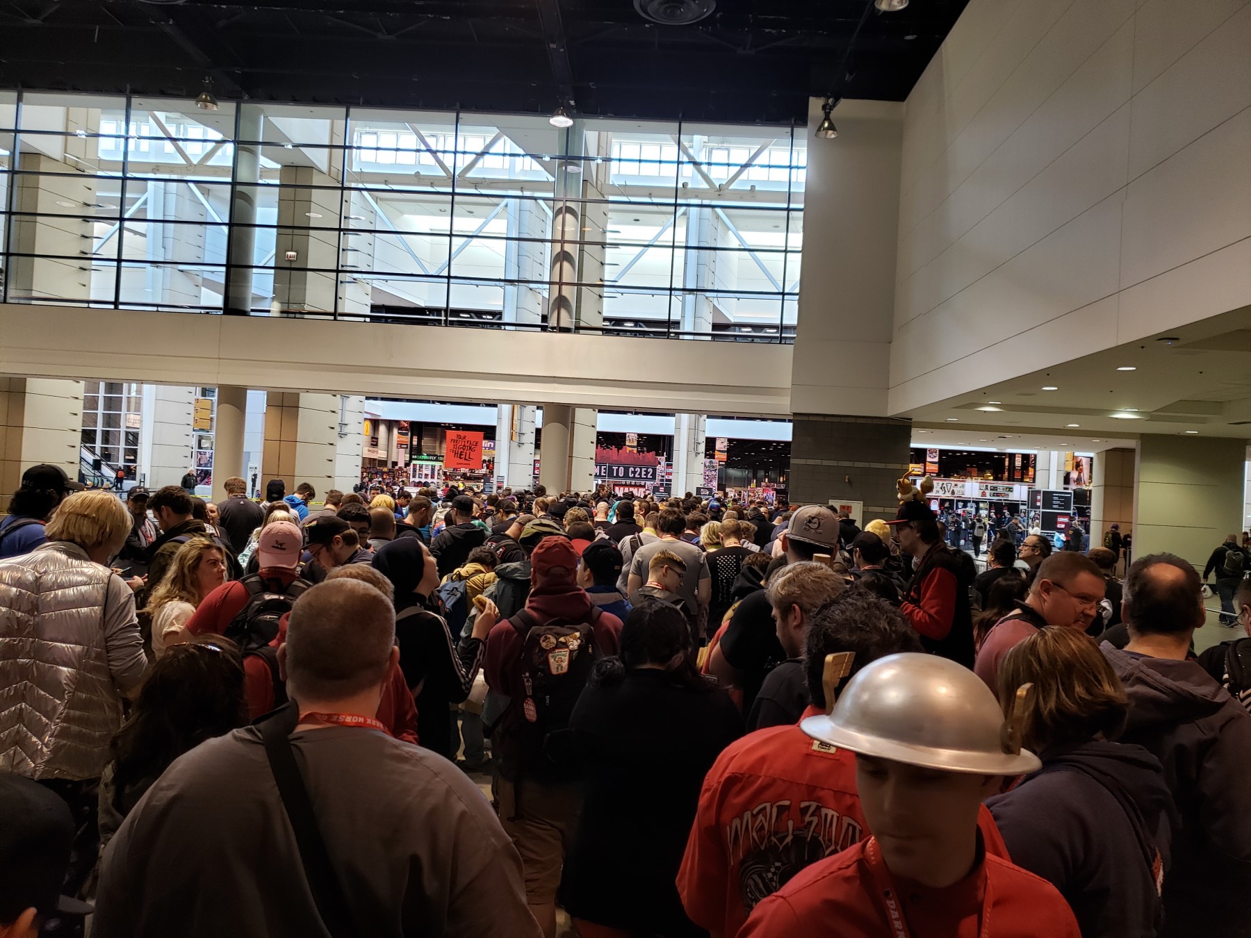 …which is for the best because that crowd grew increasingly massive by the minute, even before opening time. By 11 a.m. Lots A and B were both full; by 12:30, all Saturday-only and 3-day badges were sold out. Fans who attempted arrival beyond that had to settle for parking in Soldier Field or worse. Horror stories abounded, including but not limited to a few fans who’d prepaid for McCormick Place parking in advance — not a small expenditure — only to be told there was no room for them. Not cool.