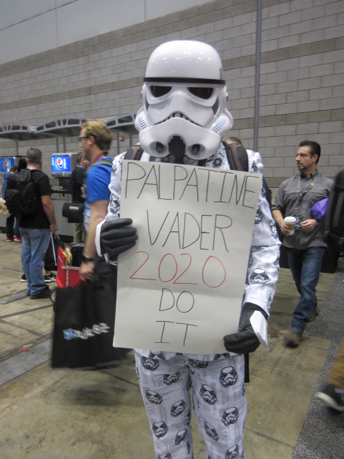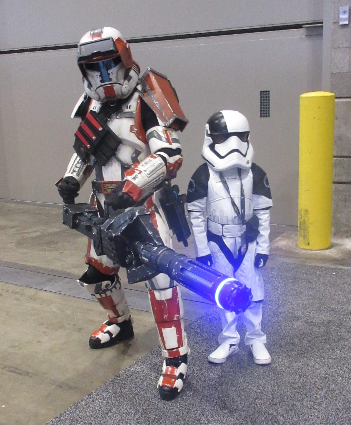 Based on past posting experience, the most popular part of every convention experience is cosplay, so those photos get to go first. We’re fans of costumes and try to keep an eye out for heroes, villains, antiheroes, supporting casts, and various oddities that look impressive and/or we haven’t seen at other cons. That was a bit challenging with a con about Star Wars for Star Wars by Star Wars starring Star Wars. It’s not as though the other cons we attend lack for Star Wars costumes. But we had fun capturing whoever we could.