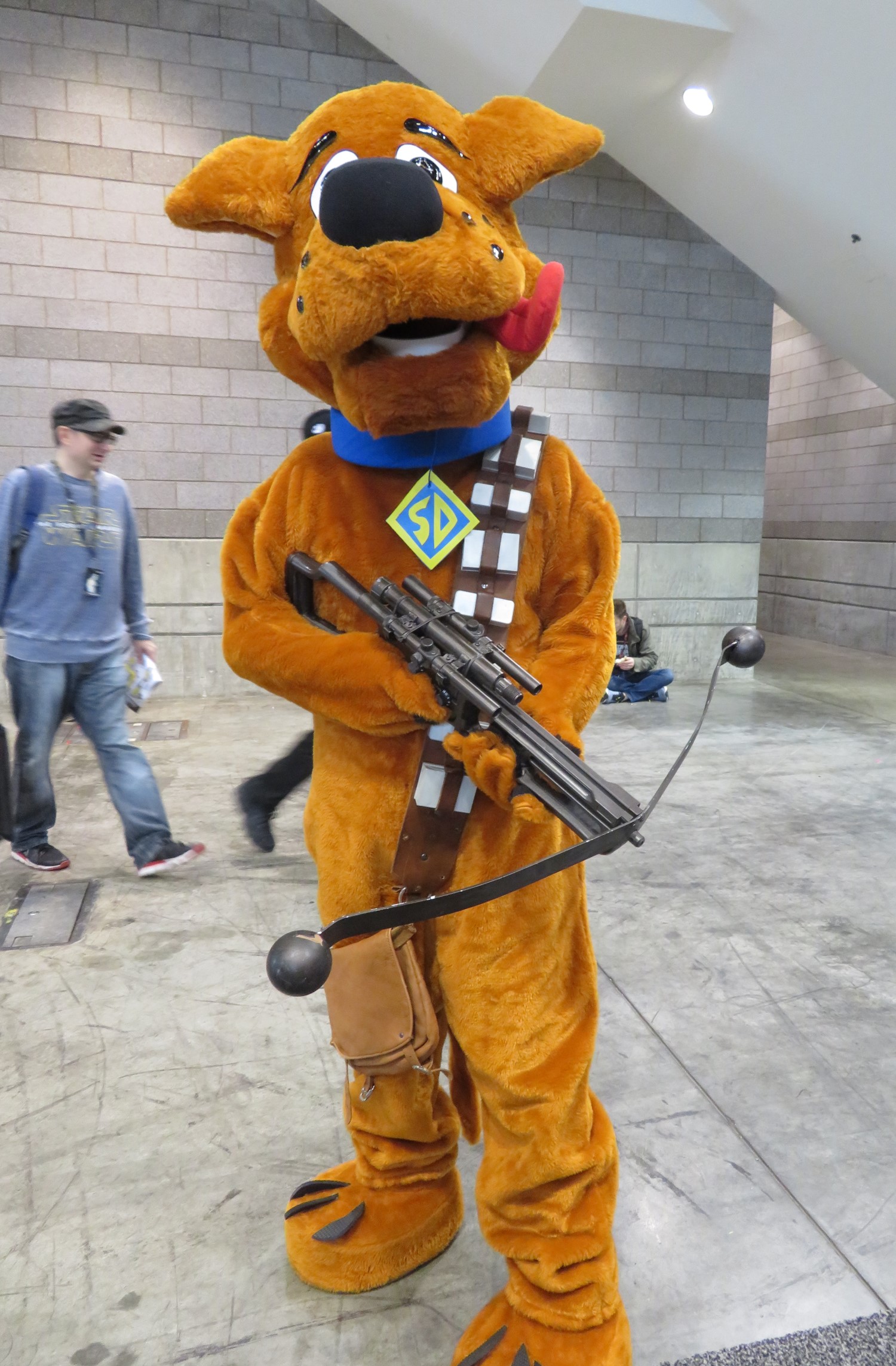 Sometimes celebs will attend conventions secretly in costume, such as Scooby-Doo here cosplaying as Chewbacca. Call him Scooby-Doobacca.