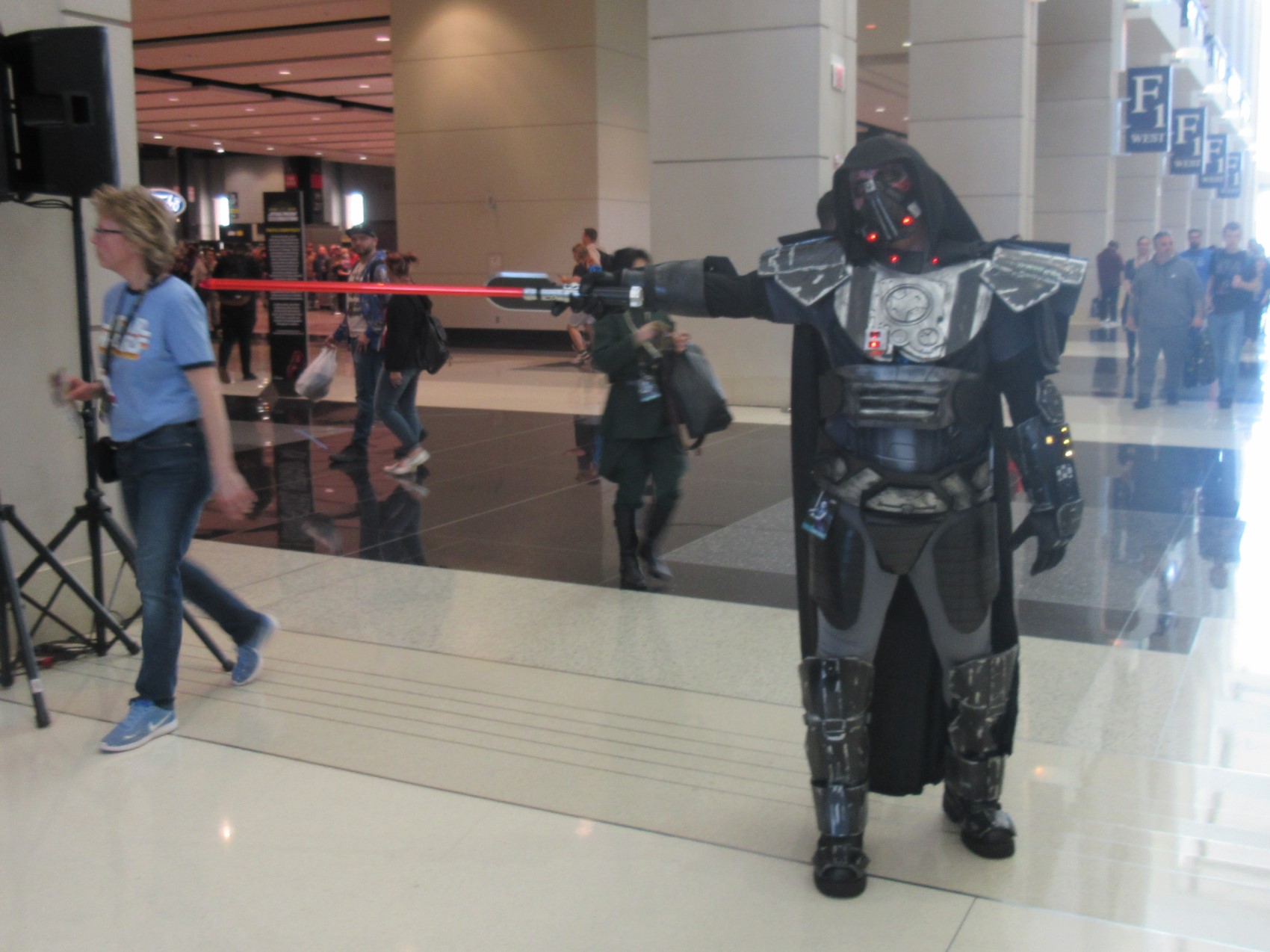 At most cons we end up with a small selection of photos I like to call “Stump the Olds”, in which we share photos of costumes that we thought looked somewhere between fancy and ingenious, and we took their picture even though we have absolutely no idea what character we’re looking at. If someone recognizes any of our next four subjects and can broaden our horizons by identifying them, that would be tremendously appreciated. I’m not quite satisfied with posting blind, unlabeled, anonymous cosplay pics even though thousands of convention-cosplay photogs super-love doing exactly that on Instagram all the time. I aspire to be at least a smidgen better than that if someone’ll help cure my ignorance. Much obliged!
