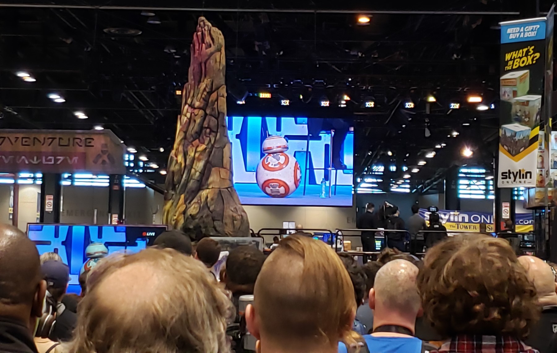 Ladies and gentlemen, it’s BB-8! Also, big shout-out to the designers of the Galaxy’s Edge booth for their 15-foot alien stalagmite, a super annoying obstacle for hundreds of us, far worse than the world’s largest floppy hat.