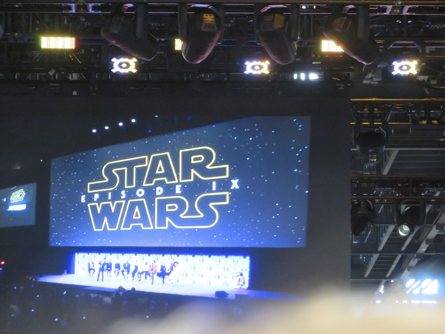 The centerpiece of the entire weekend, its biggest event, its most anticipated breaking news story, was the long-awaited first trailer for Star Wars Episode IX, as yet un-subtitled when the convention began. The trailer’s release was scheduled as part of an hour-long presentation which would star director J.J. Abrams and producer Kathleen Kennedy, at the very least. Additional unnamed guests were promised. It was fair to assume these surprise pop-ins would be the big, big-name costars from The Force Awakens and The Last Jedi, almost none of whom were on the show’s main guest list.