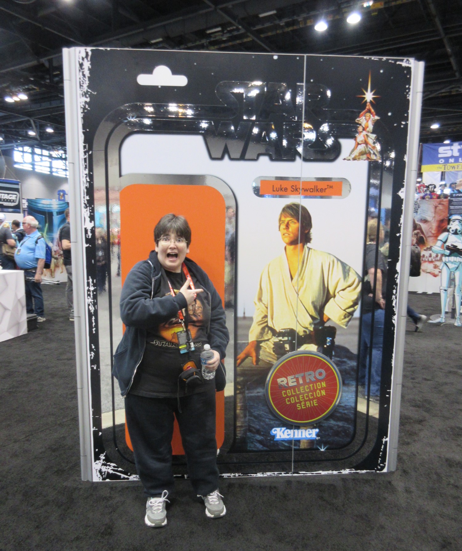 We joined the line at 9:15. The exhibit hall was scheduled to open at 1 p.m. Yes, we were ridiculously early. And we were hardly first in line. Hardcore Star Wars fans are notorious for their love of lining up for stuff. Since most of them don’t have ritual hunts that test their mettle, they have long, early lines instead. Remember that time Star Wars fans made headlines showing up far too soon for the world premiere of The Phantom Menace as if getting seats would be an issue? Lines and Star Wars stuff weren’t originally, firmly correlated, but eventually that became the norm…though I always found some truth to Roger Ebert’s comment on the phenomenon in his acerbic review of 2009’s Fanboys: “Anyone who would camp out in a tent on the sidewalk for weeks in order to be first in line for a movie is more into camping on the sidewalk than movies.”