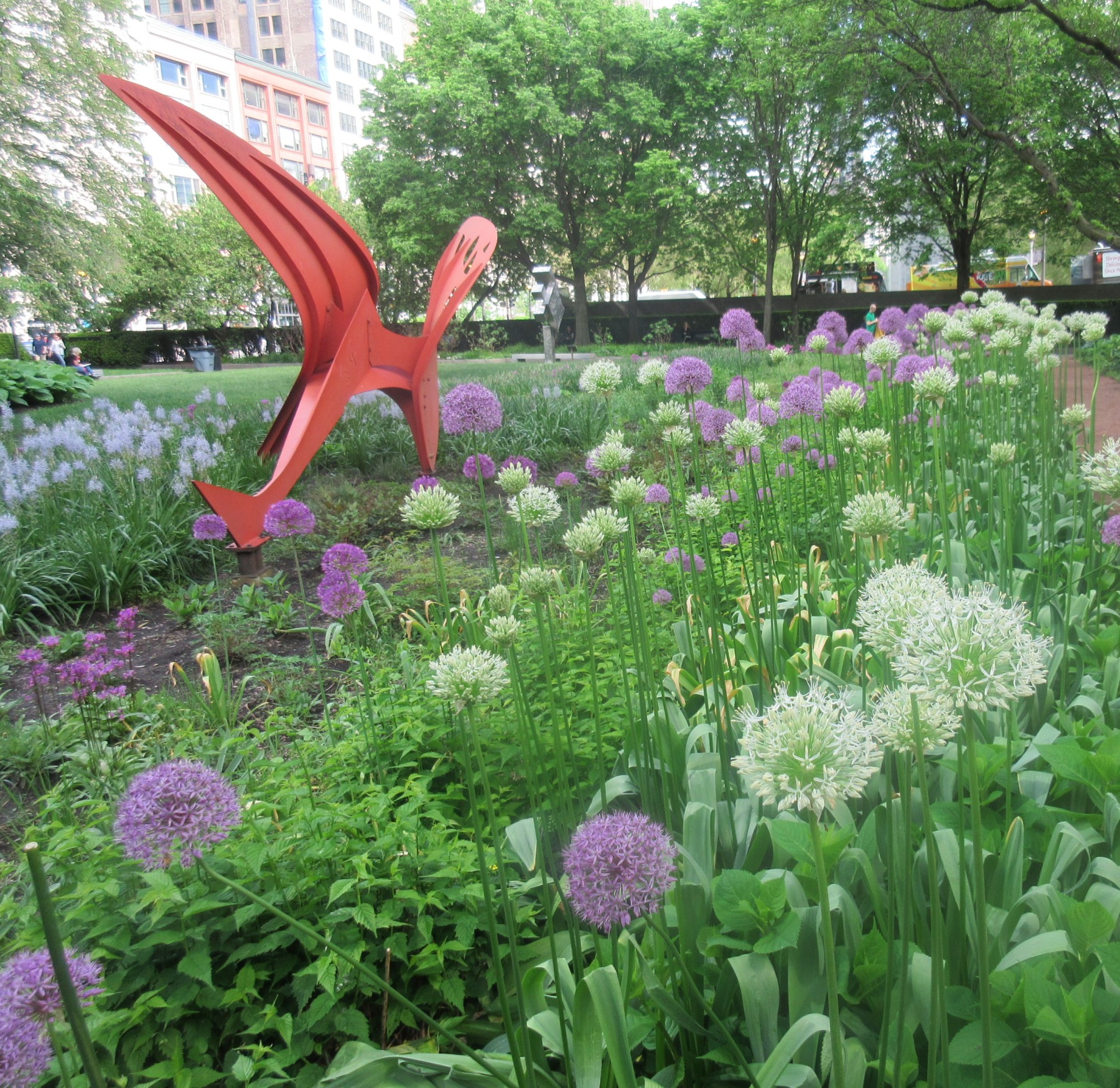 Works in their garden include Alexander Calder’s “Flying Dragon”, 1975.