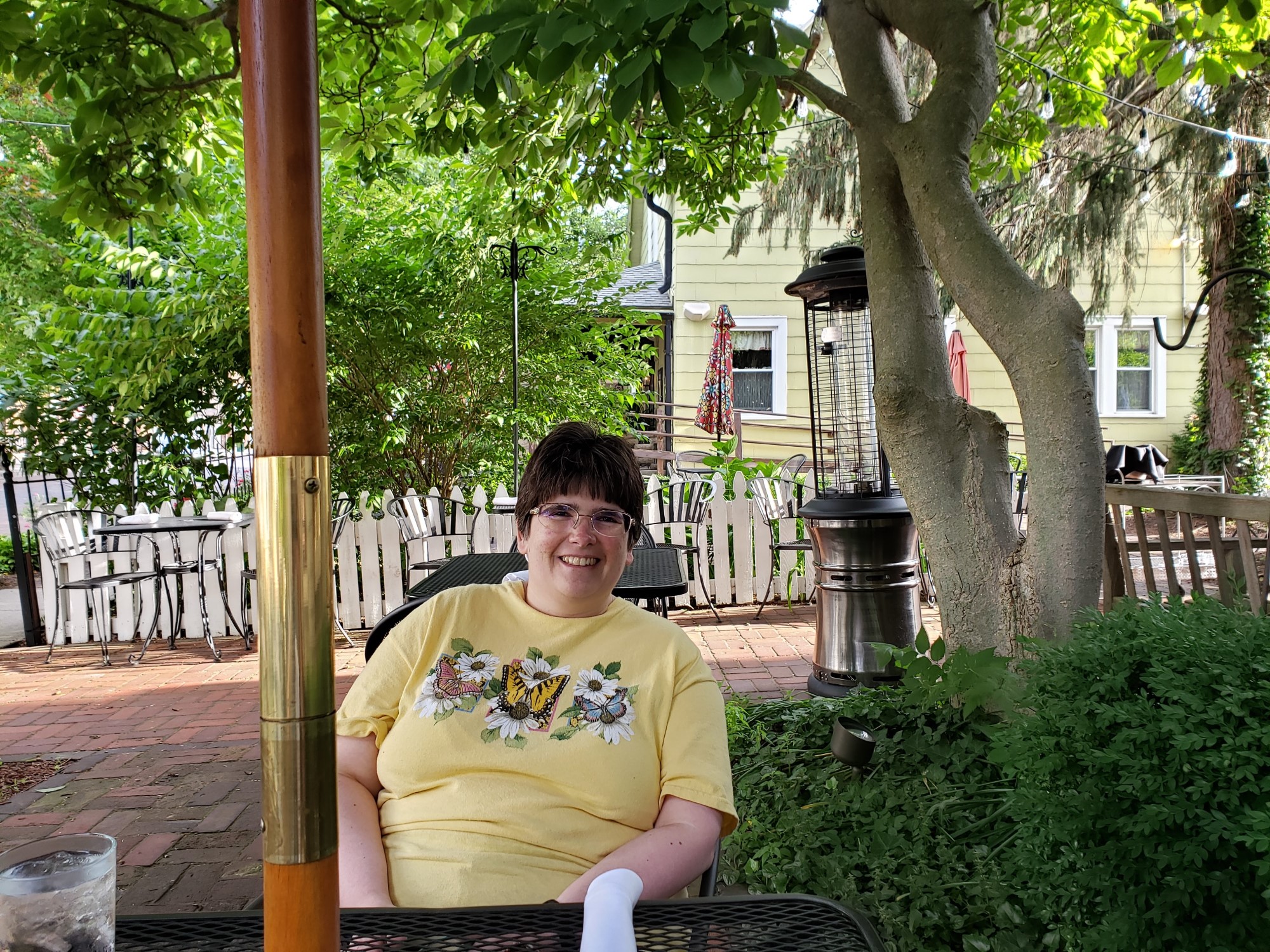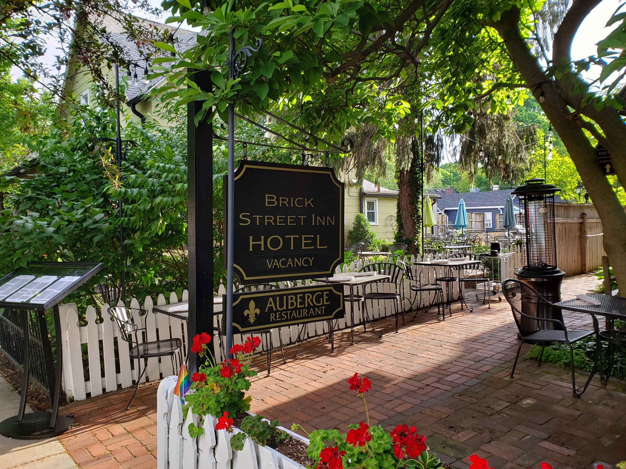 Everything you could want in a cozy eatery: trees! Flowers! Brick sidewalks! Outdoor seating! Perfect weather!