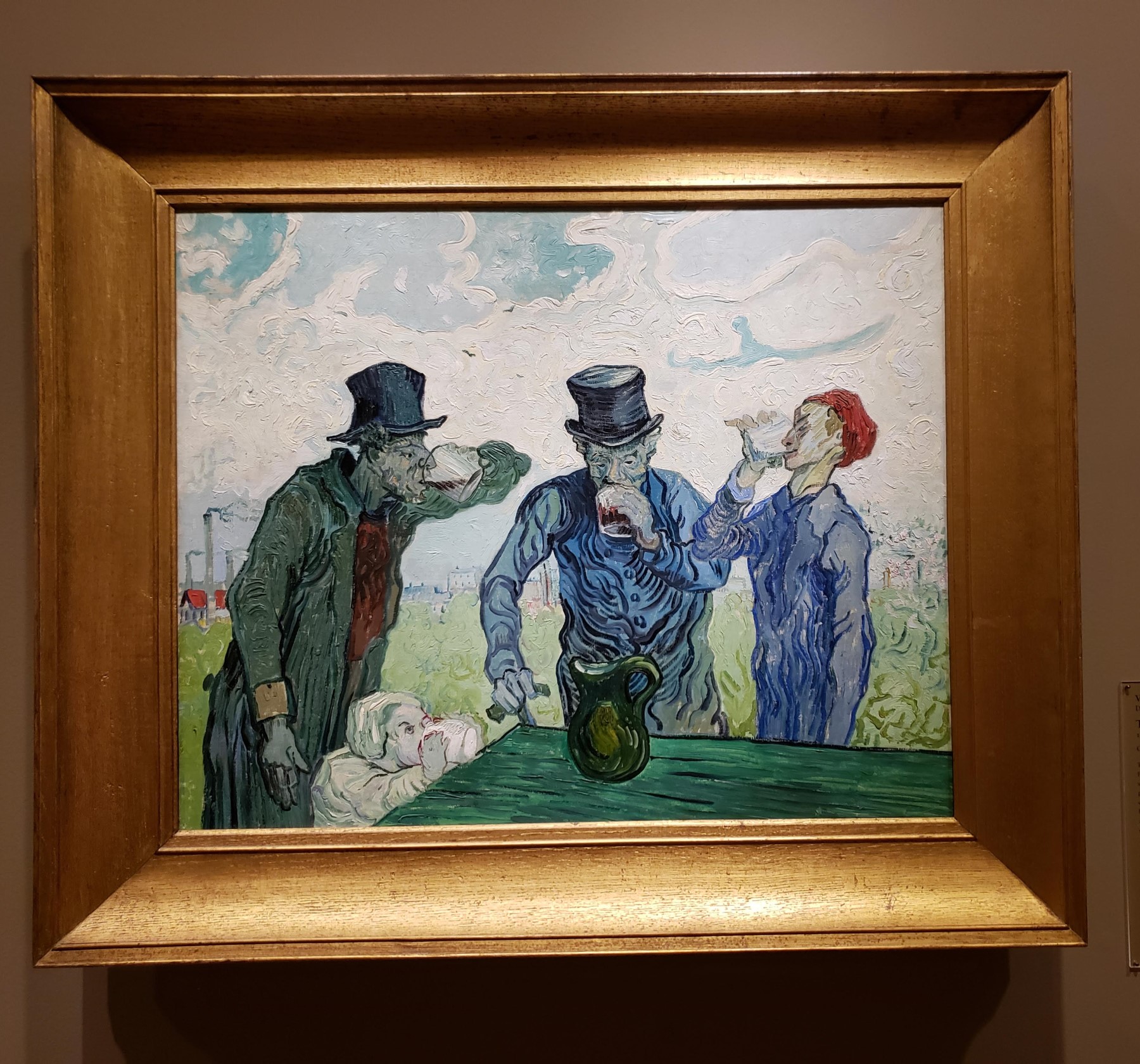 To answer your question from several captions, yes, they did indeed have some van Gogh. 1890’s The Drinkers, is an homage to or ripoff of Honore Daumier’s 1850 composition Physiology of the Drinker: The Four Ages.