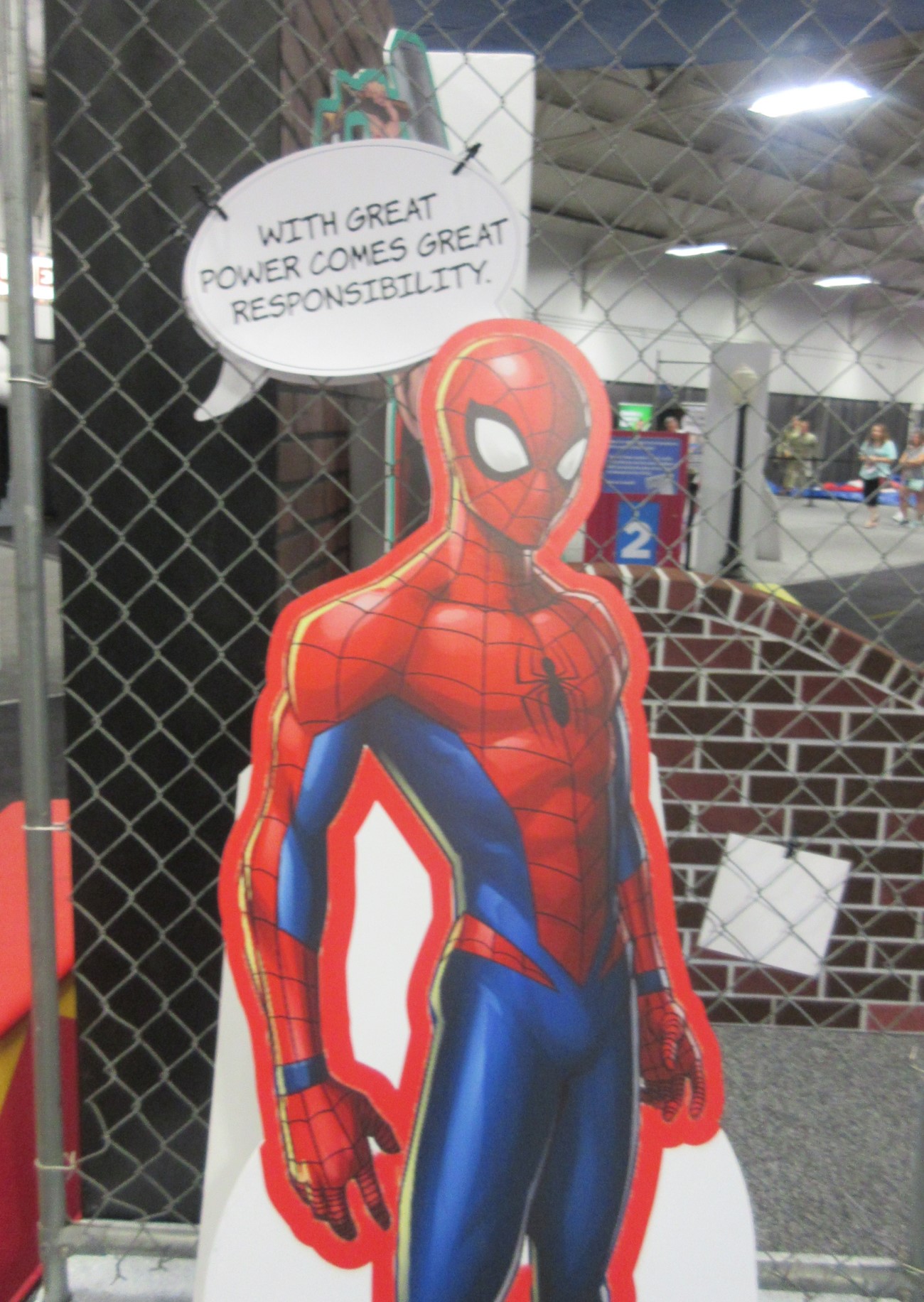 Kids could have photo ops of their favorite heroes trumpeting their popular catchphrases. Spidey’s is easy to guess.