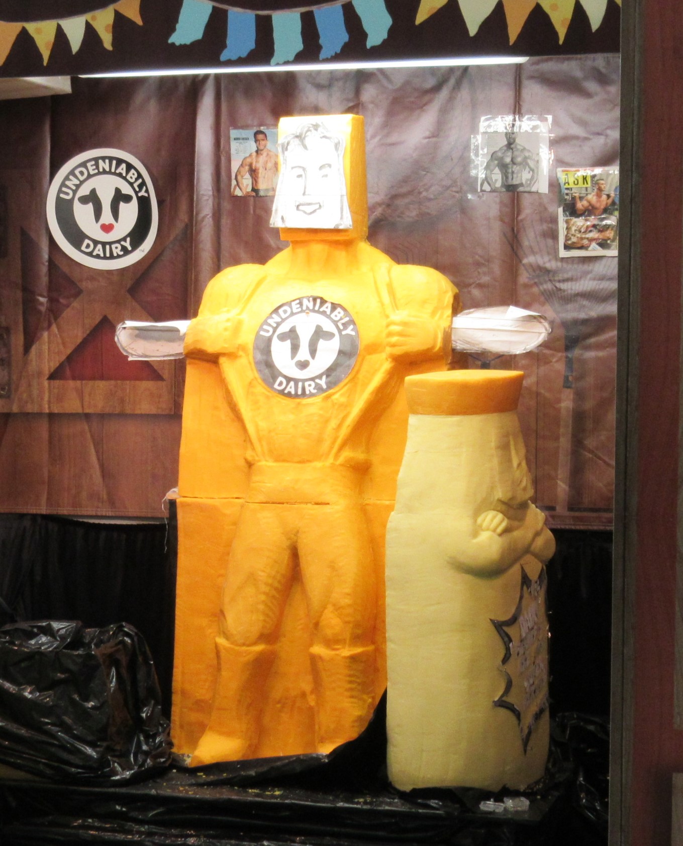 Also a work in progress, over at the AgHort Building was the State Fair’s official cheese sculpture, naturally superhero-themed. This should be finished later into the fair’s run, which ends August 18th.