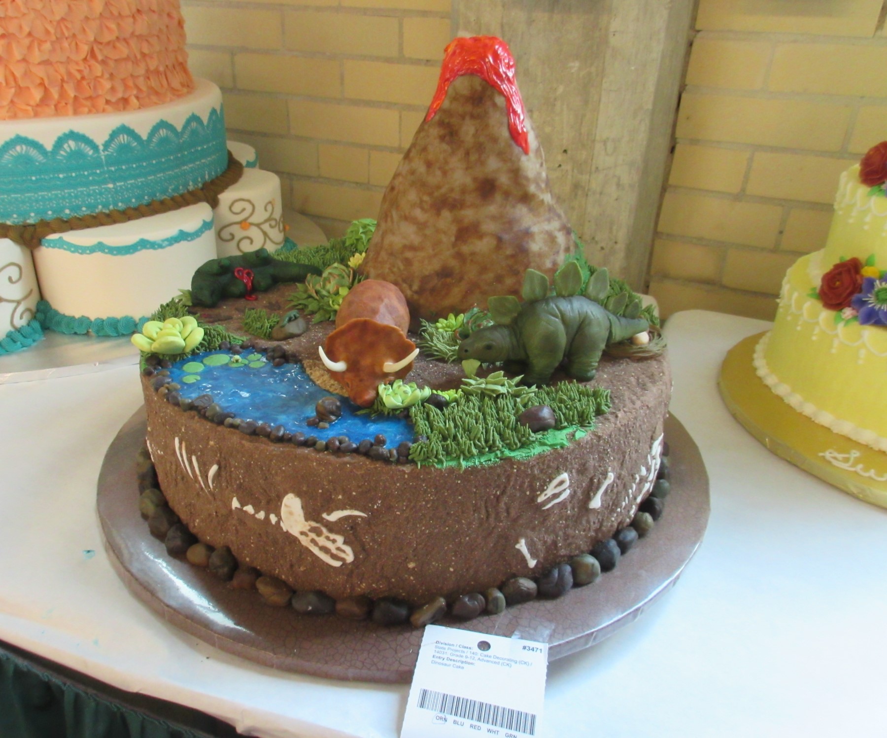 Volcano and dinosaur diorama, but edibles instead of science fair project. I’m reminded of Fantasia and like to think this is “Rite of Spring Cake”.