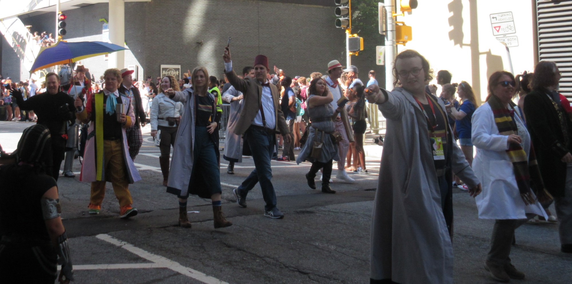 …such as that Saturday morning parade through downtown Atlanta. In this installment we throw in a smattering of Doctor Who and then another roundup of random characters from science fiction and here and there and everywhere. Same cautions apply as last time: we’re pros, not fans; corrections are very welcome if we misname anyone; we do take requests, but can’t guarantee we photographed every parade participant; enjoy!