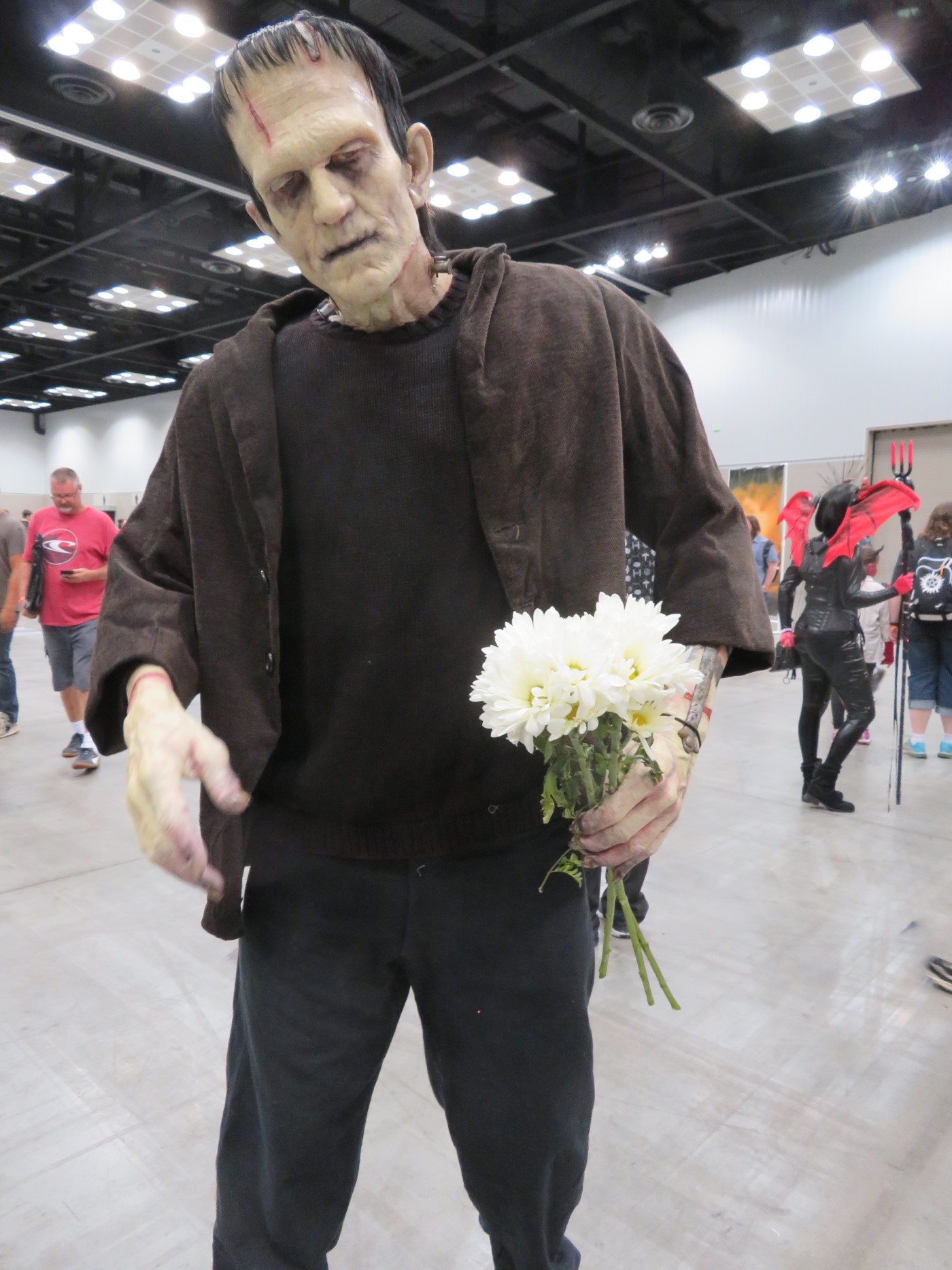Saturday marked our fifth trip to HorrorHound Indy, an annual Indianapolis convention in honor of the scary, bloody, icky, haunting, stabbing, disturbing, black-garbed aspects of pop culture. The folks at HorrorHound Magazine orchestrate the festivities so loyal fans of the murderous and the macabre can enjoy a themed geek space of their own apart from Star Wars and Star Trek and whatnot. (Well, mostly.) As we’ve gotten older and more puritanical, our touchpoints with horror, terror, and gross-outs have dwindled in number compared to the average attendee, but the intersections between their guest list and our favorite worlds continue to delight and surprise and draw us back into their waiting wings.