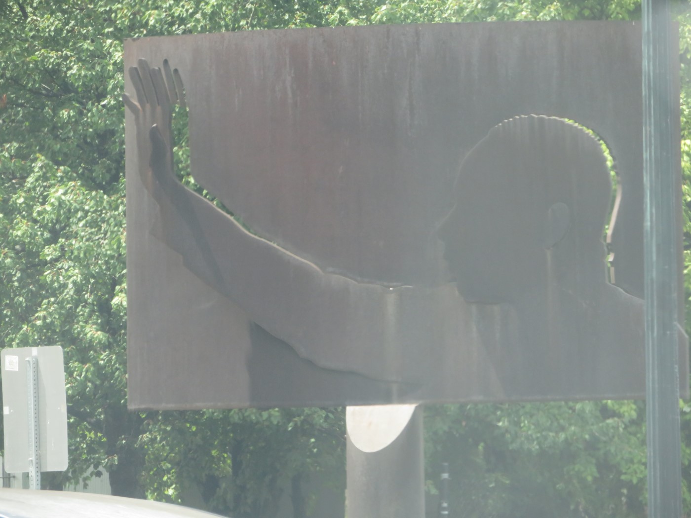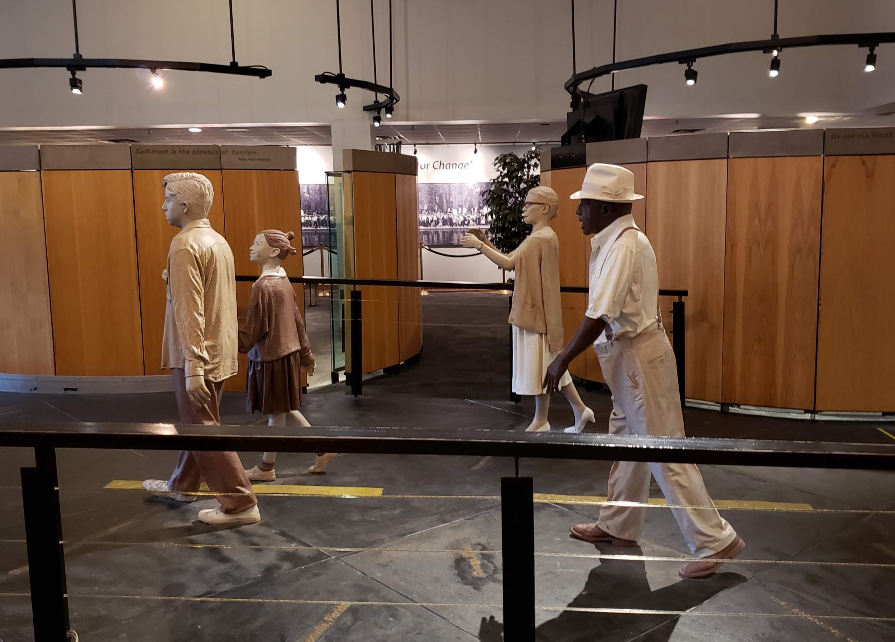 The centerpiece is a series of statues recreating a civil rights march, with participants from multiple demographics.