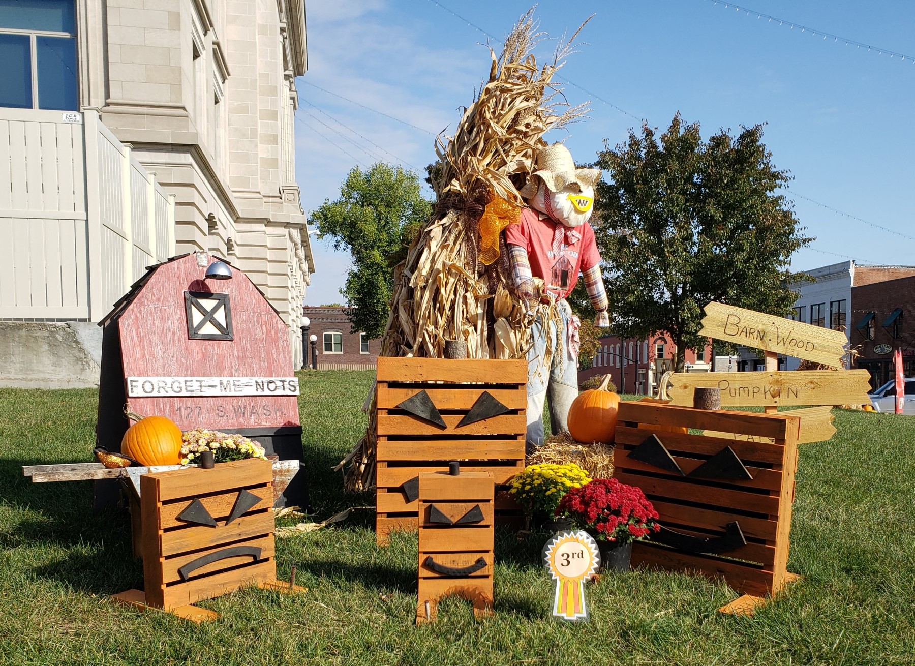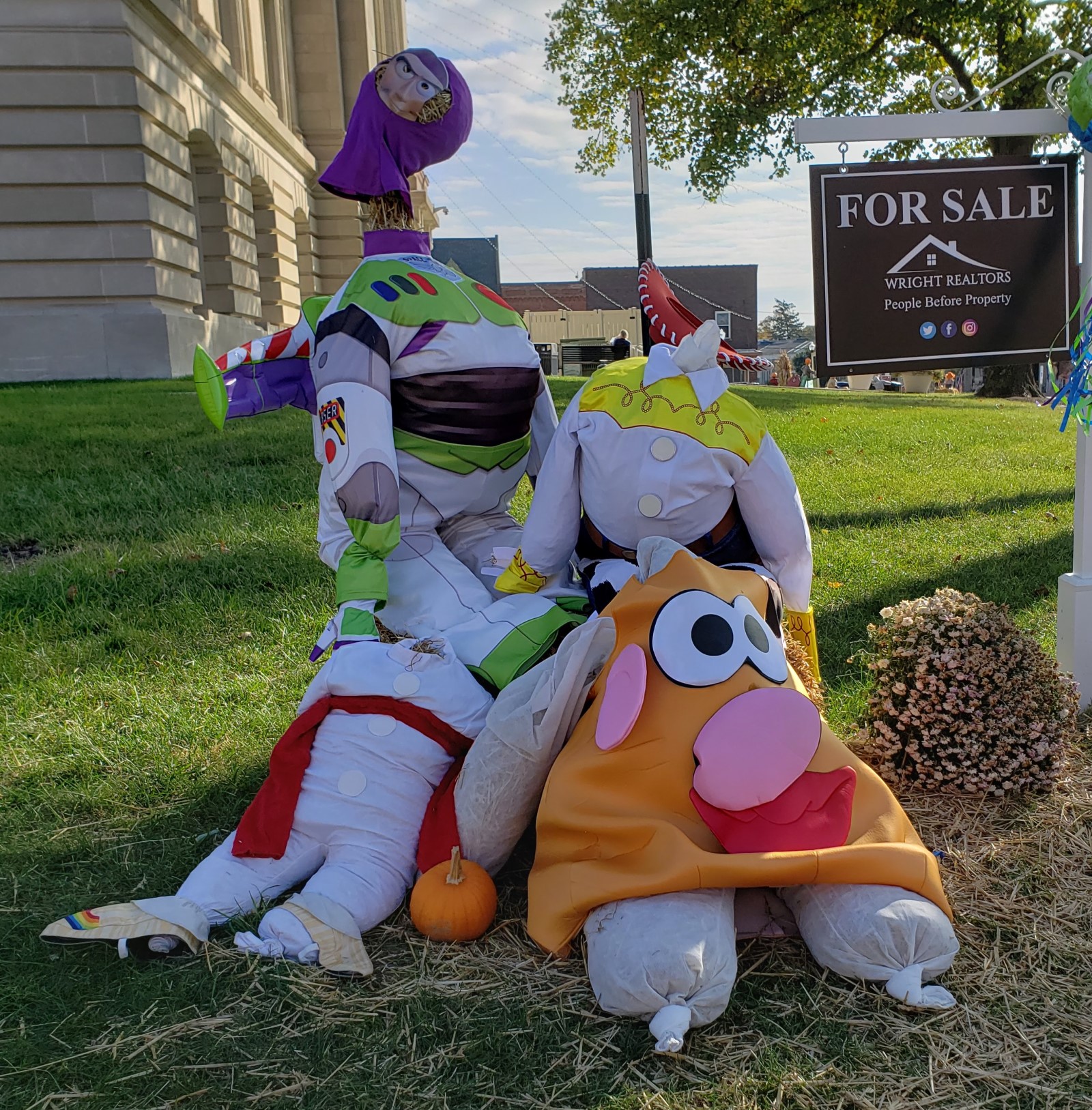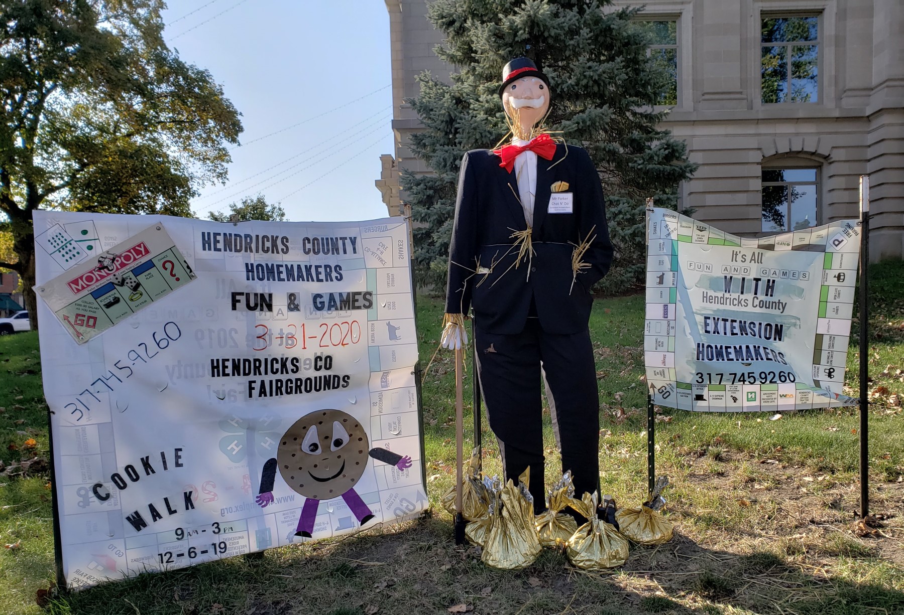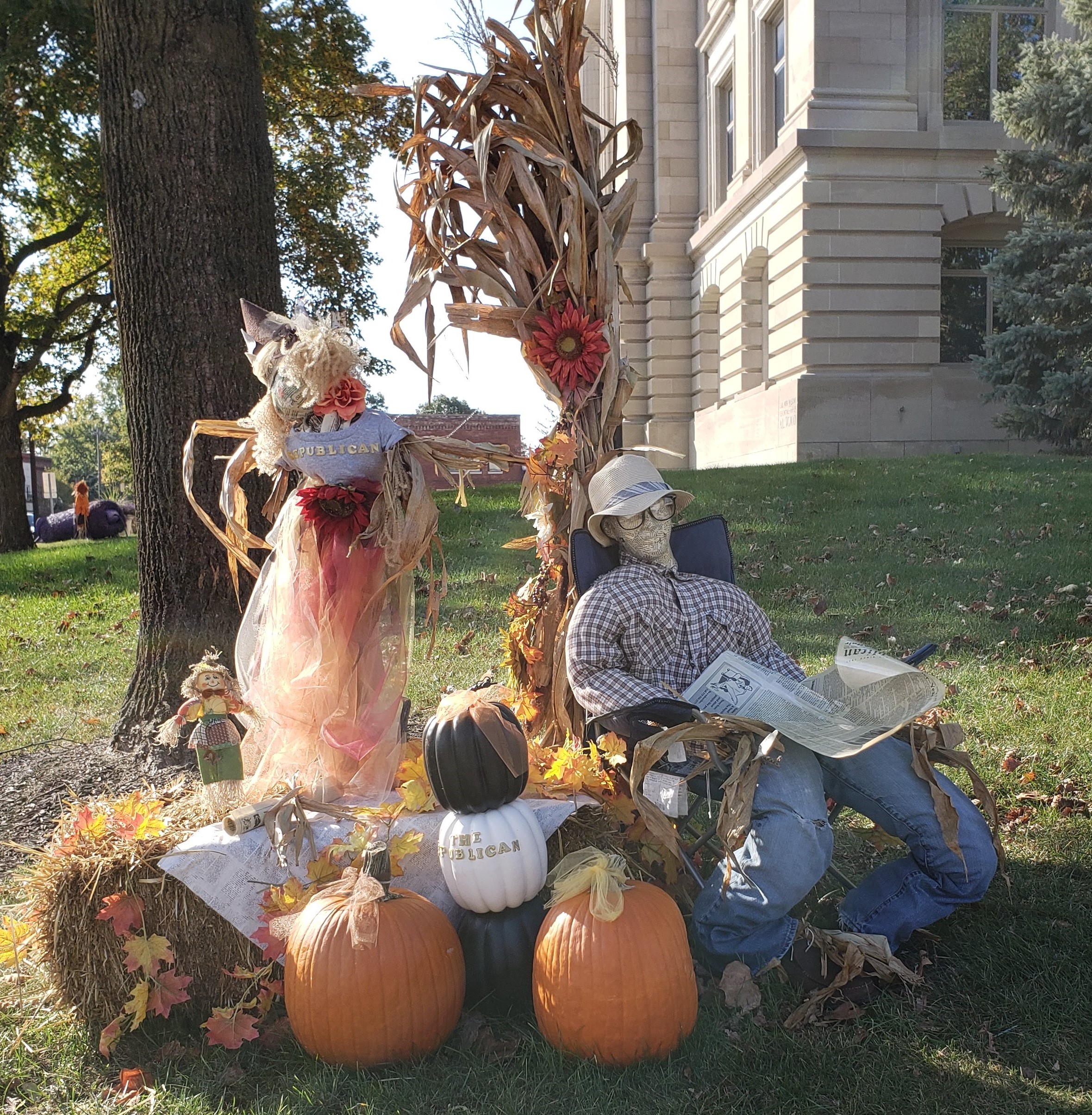 Last weekend my wife Anne and I were out of town visiting my in-laws’ church and scouting the surrounding areas for fresh donuts when we stumbled across a surprise delight. Apropos of the autumn season and the upcoming Halloween holiday, we learned the nearby town of Danville, Indiana, holds an annual contest inviting local businesses to create their own scarecrows. A few craftspeople kept it simple. Some drew inspiration from their own lines of work. Some dove right into pop culture for their subject matter, which of course is bound to catch our eyes. Still others let their imaginations run amok. These were some of the standouts to me, proudly on display around the town square.