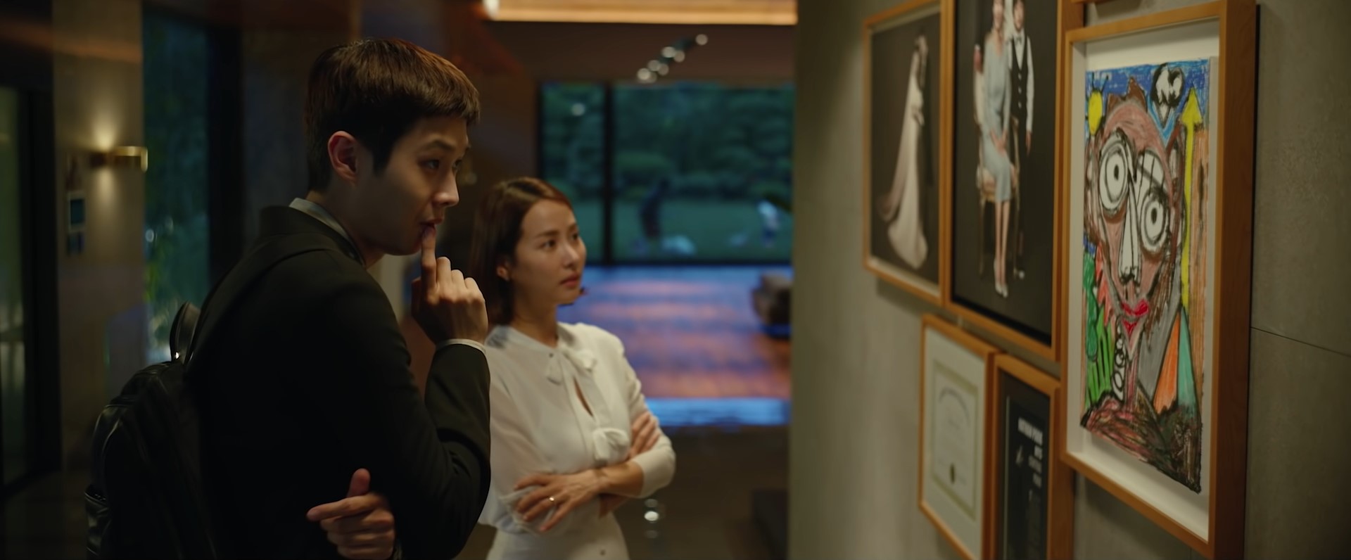 For now the rest of the cast are unknown to me, but I’ll be disappointed if I don’t see them again in future endeavors. Particular note must be made of Park So-dam as Poor Daughter, the boldest con artist on the team, who bedazzles Rich Mom in the interview with jazzed-up credentials from the faraway exotic land of Illinois and whose mnemonic to remember her fake backstory is now available as a ringtone.