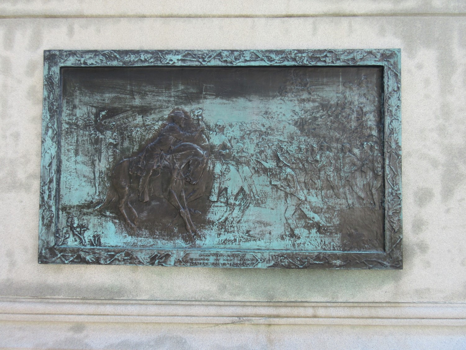 On the side of Gordon’s horse’s base was the only nod I could find to Robert E. Lee — a bas-relief depiction of the Battle of Spotsylvania Court House.