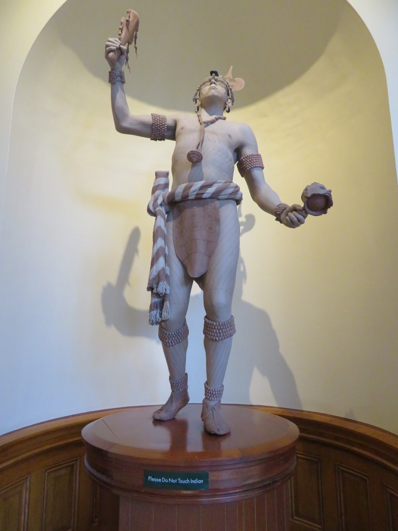 Various natural history artifacts include this statue of a Mississippian Chief, which has apparently experienced issues with grabby patrons.