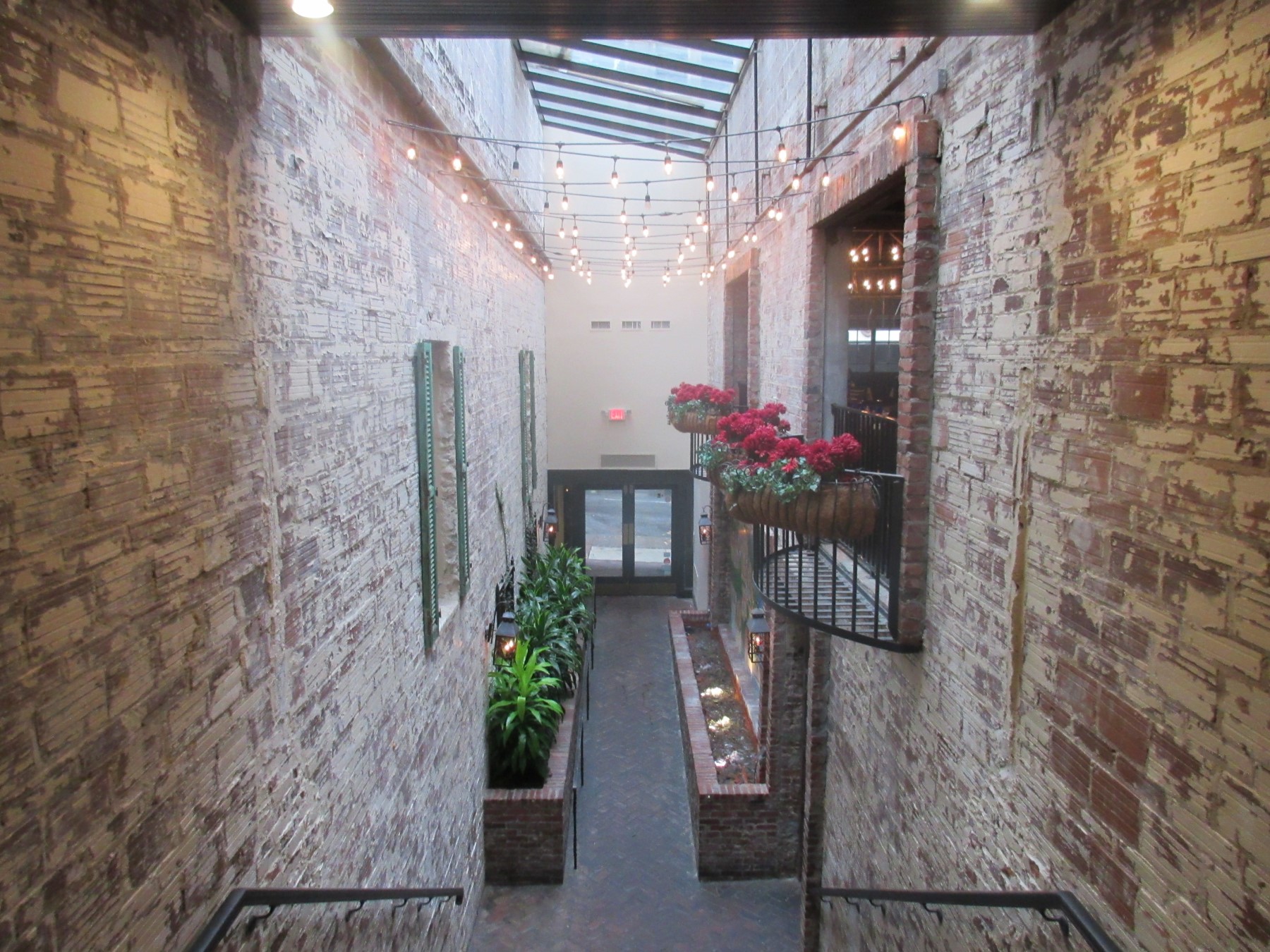 Through the doors, a rustic hallway leads to their second-floor dining room. This was the view on our way out.
