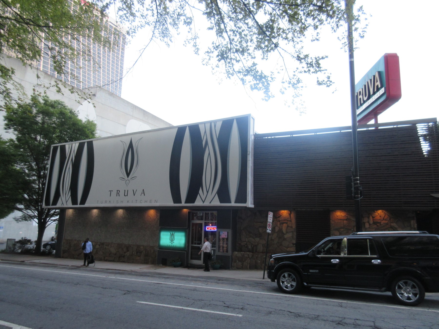WEDNESDAY THE 28TH – DINNER: By this time, other geeks were trickling into town and crowding up downtown eateries. OpenTable managed to snag us a reservation anyway at Truva Turkish Kitchen. As fans of Mediterranean cuisine we would’ve eaten there sooner in the week, but we noticed one drawback in their general descriptions: a threat of live belly-dancing. Our experiences thus far with belly-dancing displays have not been rewarding ones, and I’ve made a survival tactic of steering us away from any businesses that expect me to spend my time ogling women who aren’t my wife, regardless of whether or not she’s right there with me.