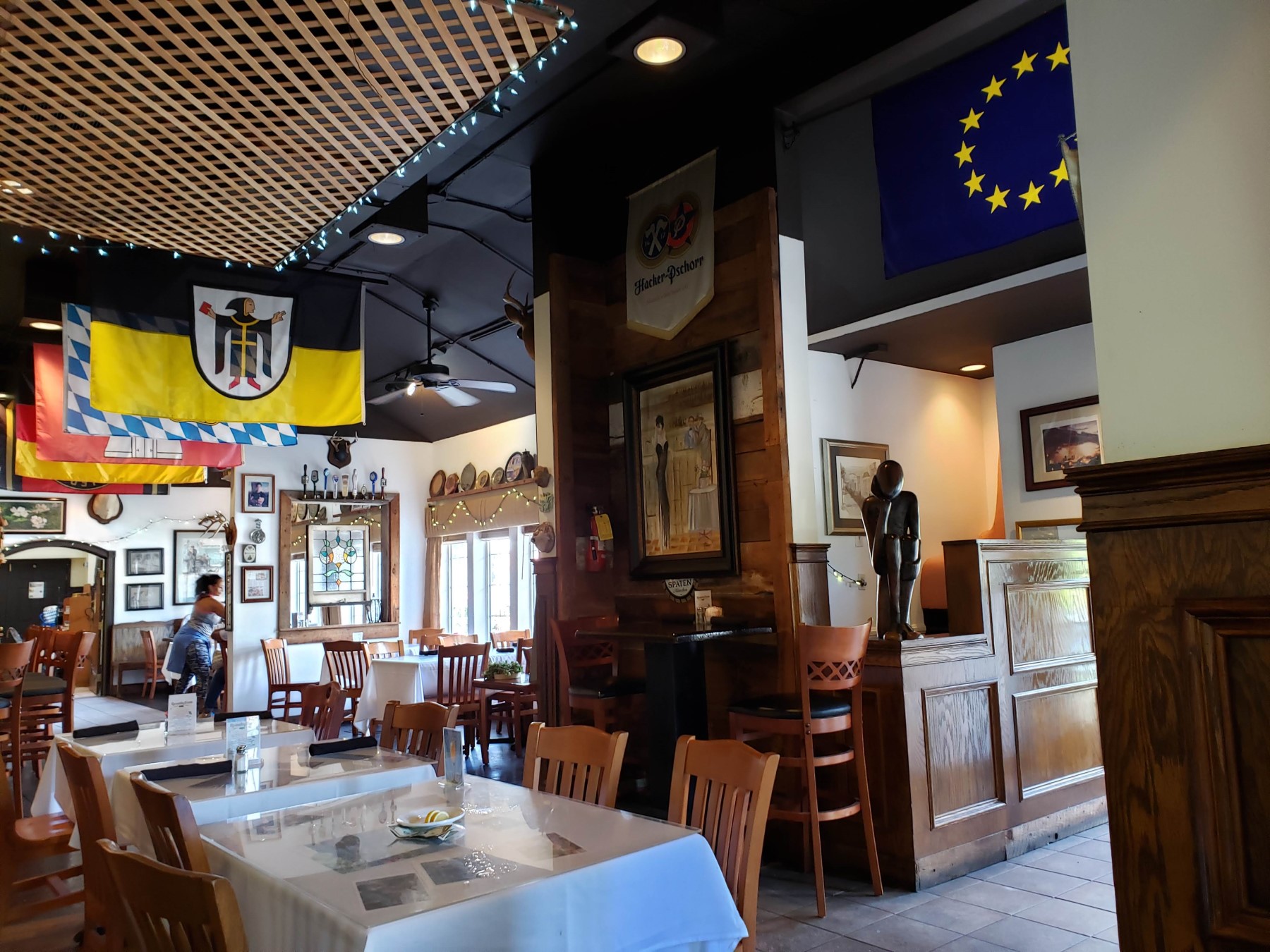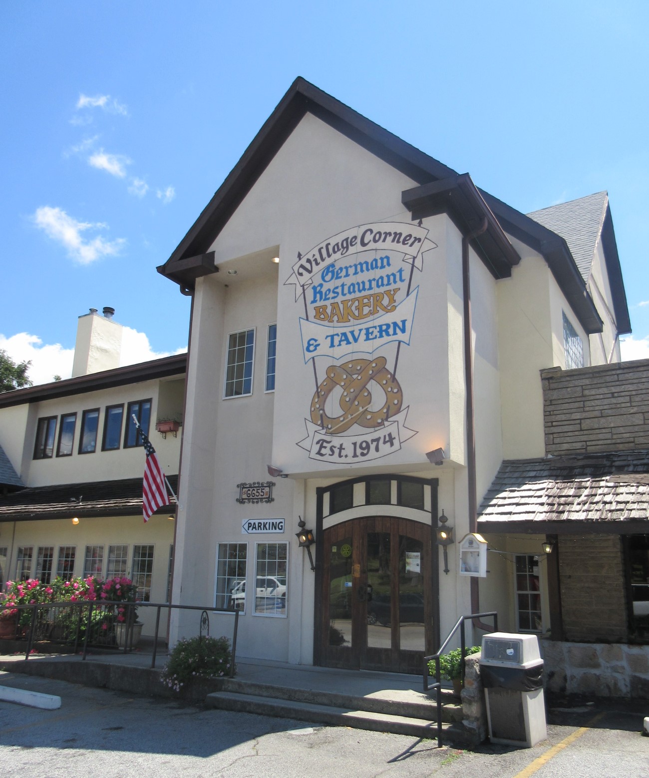WEDNESDAY THE 28TH – LUNCH: After descending Stone Mountain we headed out on the highway for a few miles, stopped, turned around, and headed the correct direction toward its namesake town. There we found a place founded by German immigrants in 1974 called the Village Corner German Restaurant, Bakery & Tavern. We came for one, ordered wondrous snacks to-go from the other, and ignored the third.