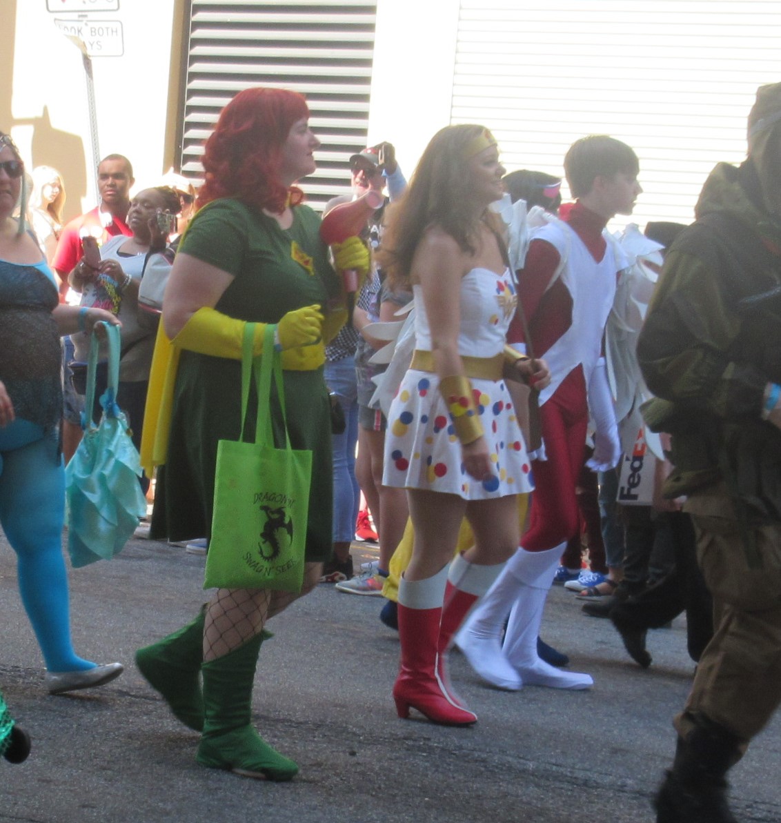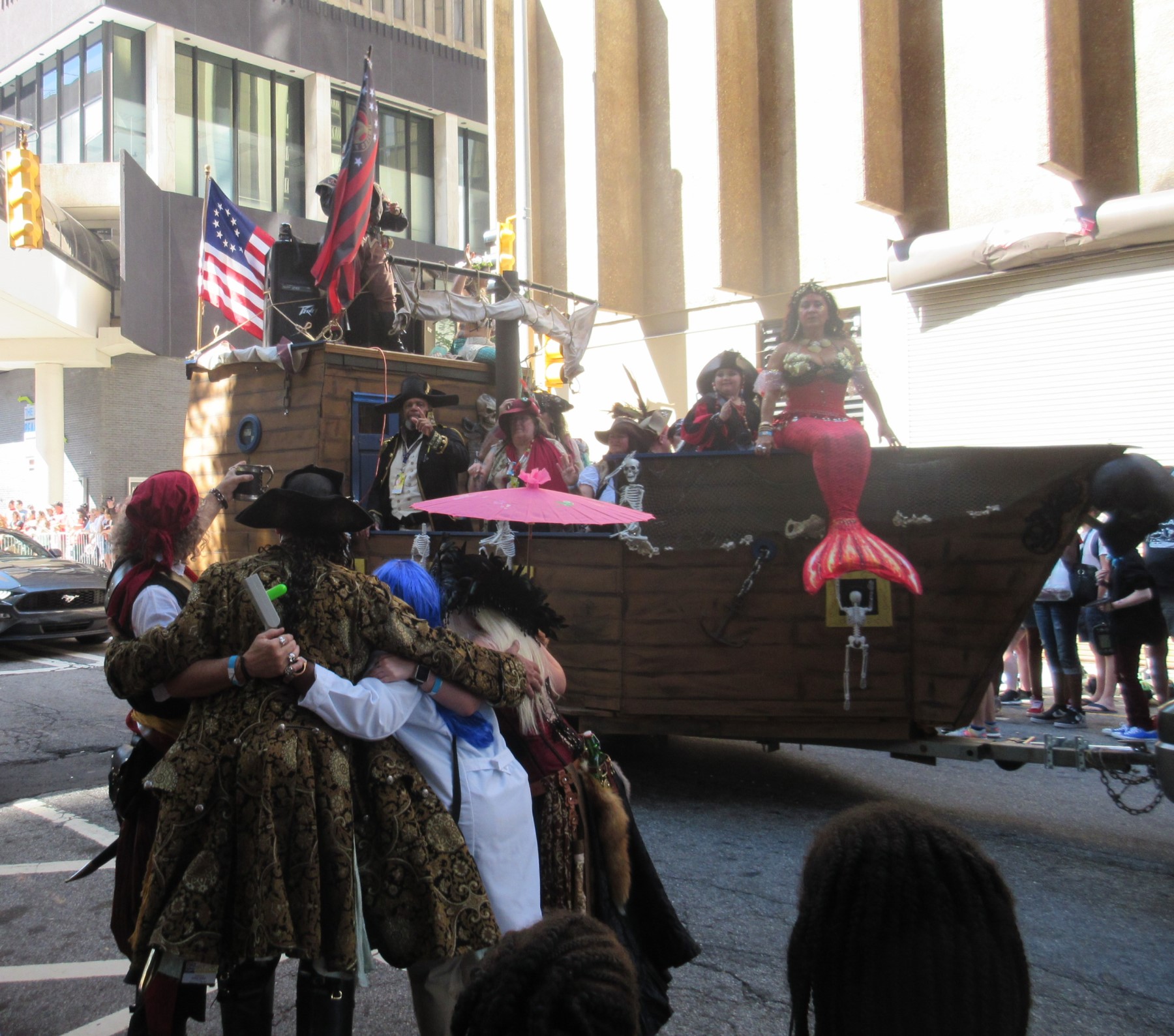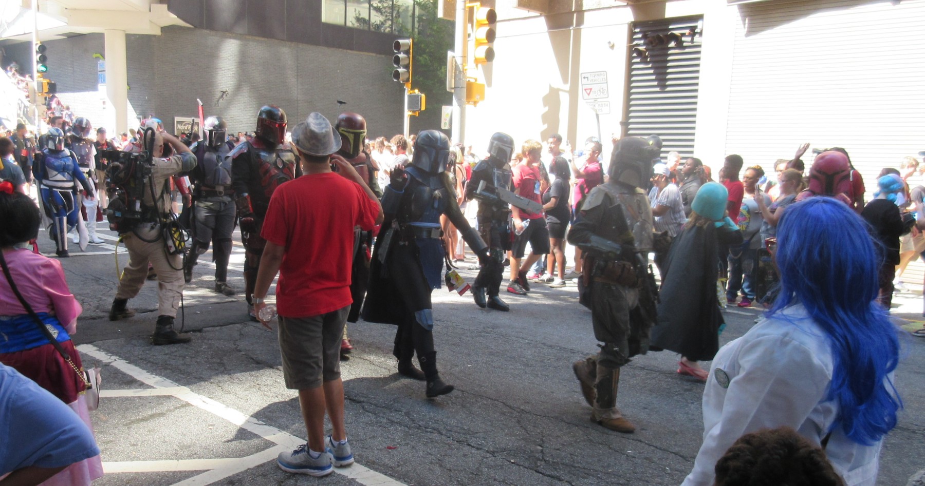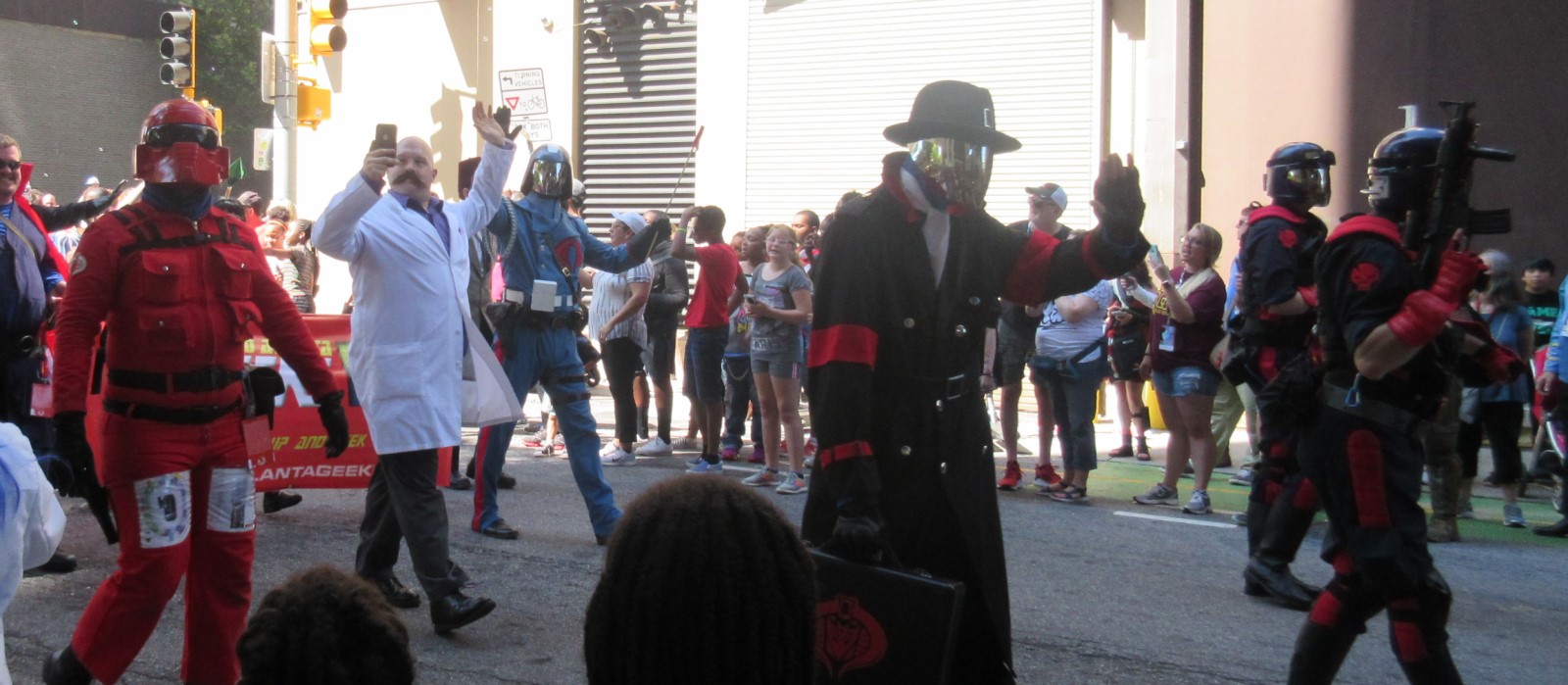 The proud annual tradition of the Saturday morning Dragon Con parade is definitely not a thing we can see back home at any of our usual cons. Multiple groups and organizations walk, ride, roll, and gallivant together in a united display of pop culture through downtown Atlanta. Hundreds of participants boast costumes and gear from across the wide spectrum of entertainment. The festivities draw thousands of onlookers every time — not just D*C attendees, but Atlanta citizens as well…the spectacle is nonetheless a staggering feat of community and imagination. Of the nearly 1800 photos Anne and I took over the course of our eight-day trip, roughly 400 of those were from the parade alone…