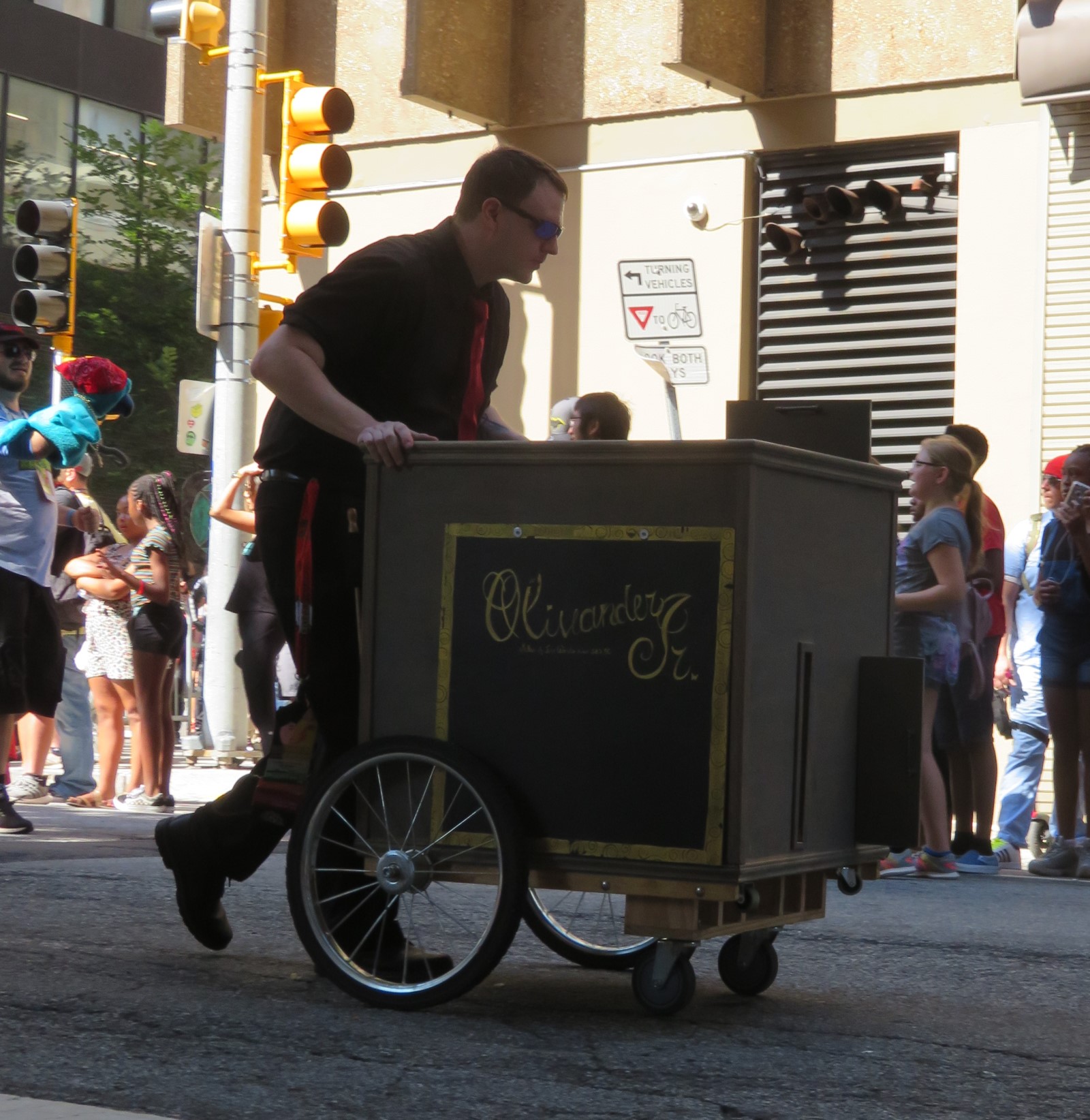 Olivander Jr. taking it to the streets with his wand cart. Why buy from an ice cream man when you can buy a wand and create your own treats from thin air?